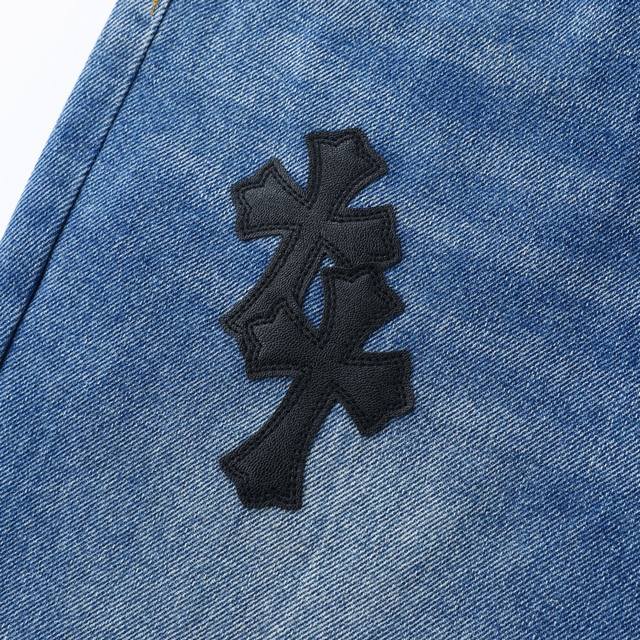 High version Chrome Hearts leather label cross washed jeans, same style for men