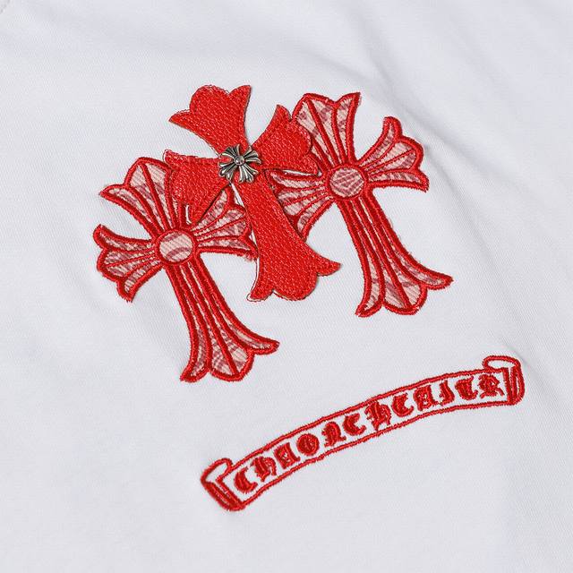 High version Chrome Hearts patch embroidered horseshoe cross short sleeves! The front and back patches are designed with heavy embroidery in Sanskrit. The fabric uses 100% cotton double yarn fabric, which is different from the low-weight ordinary goods on the market. The texture is clearly visible, the texture is soft, delicate and smooth, and it has a full drape! It has a certain thickness and is not cheap. The material is comfortable to wear and not tight. It is the most avant-garde street item that men and women can easily match! Detailed accessories + anti-counterfeiting washing label hangtag! The fabric thread is dyed in the same vat without color difference! Loose version is the same for men and women