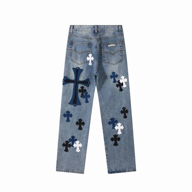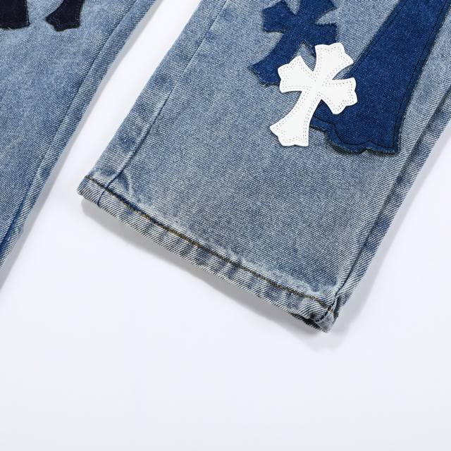 High-end Chrome Hearts Sexrecords series limited edition cowhide jeans, unisex. Authentically recreating the ultimate vintage texture, Italian-made special cowhide printed and then cut to order, three layers of thick-threaded sheepskin are stitched together, and the heavy water washing and dyeing process is detailed. The heavy washing process makes the fabric more textured and the pants stand out! The three-dimensional cutting of the pants is absolutely amazing!