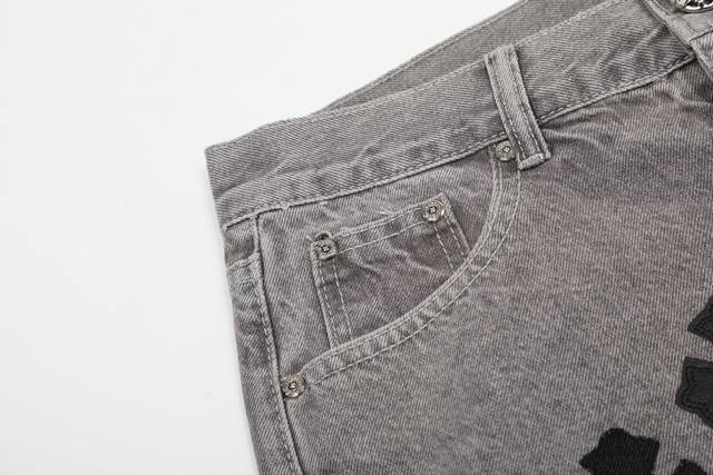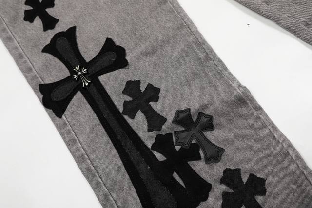 High-end Chrome Hearts Sexrecords series limited edition cowhide jeans, unisex. Authentically recreating the ultimate vintage texture, Italian-made special cowhide printed and then cut to order, three layers of thick-threaded sheepskin are stitched together, and the heavy water washing and dyeing process is detailed. The heavy washing process makes the fabric more textured and the pants stand out! The three-dimensional cutting of the pants is absolutely amazing!