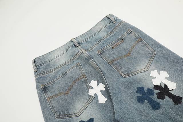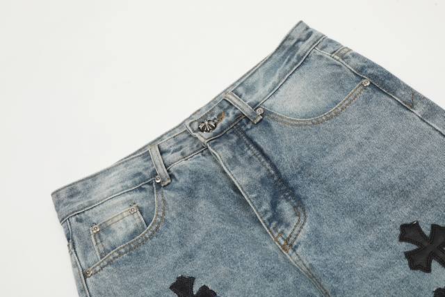 High-end Chrome Hearts Sexrecords series limited edition cowhide jeans, unisex. Authentically recreating the ultimate vintage texture, Italian-made special cowhide printed and then cut to order, three layers of thick-threaded sheepskin are stitched together, and the heavy water washing and dyeing process is detailed. The heavy washing process makes the fabric more textured and the pants stand out! The three-dimensional cutting of the pants is absolutely amazing!