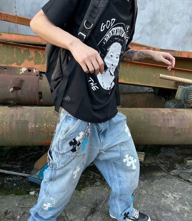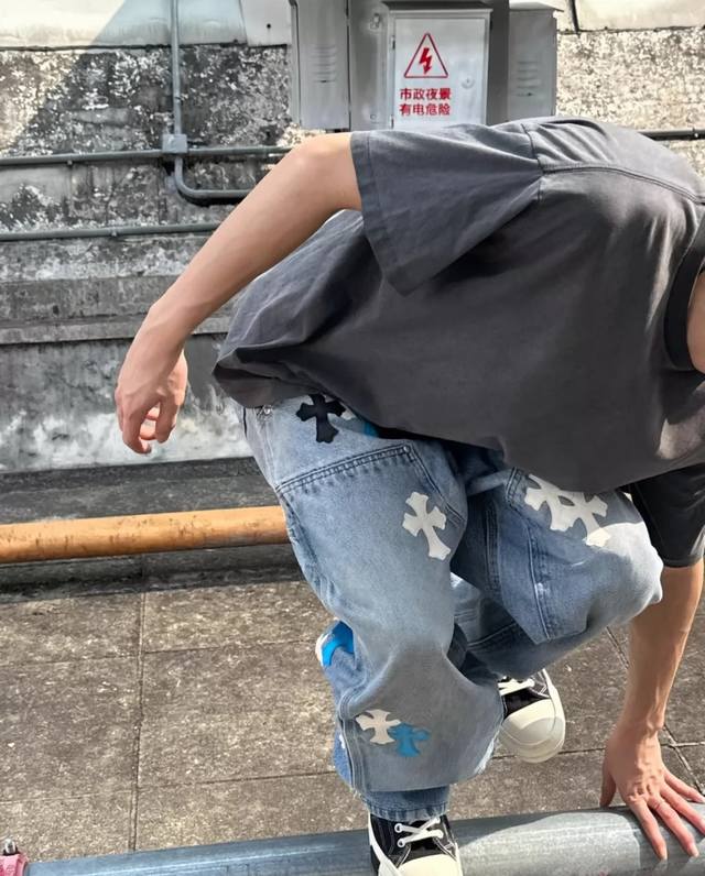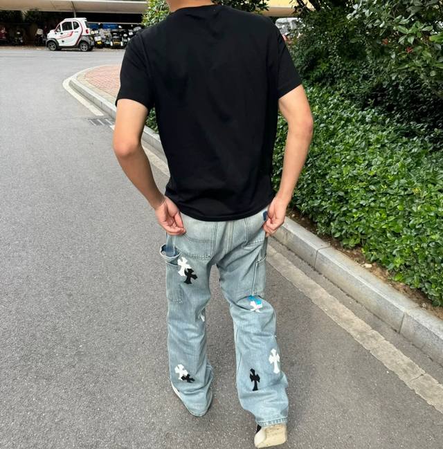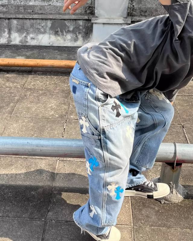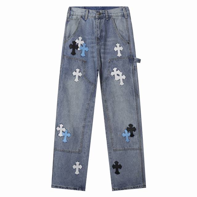 Cabinet W level, patch cross flower embellishment, high waist washed jeans! ! Absolutely high-end luxury products, top heavy craftsmanship, can not be missed street magic weapon