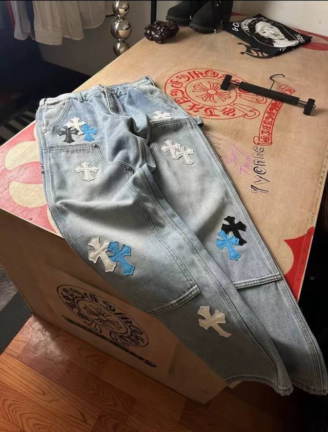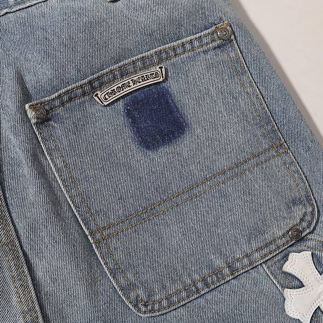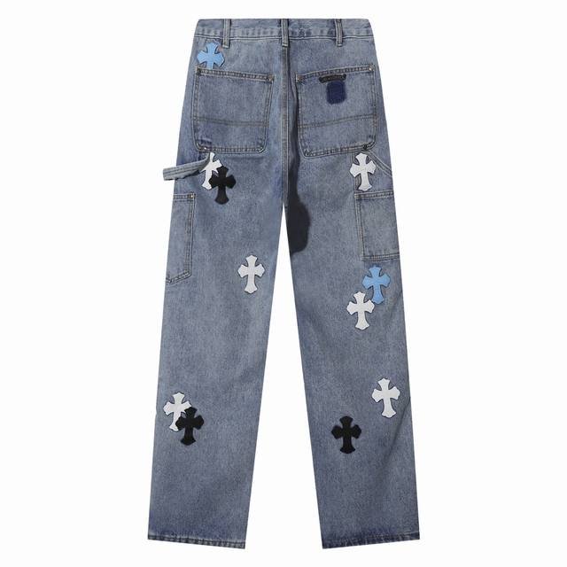 Chrome Hearts Ch knee cross leather B01 version lumberjack pants straight Sanskrit overalls