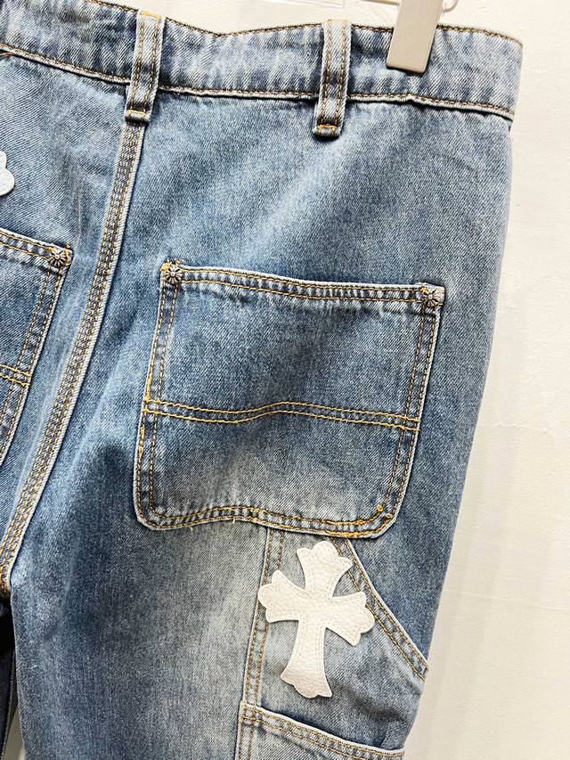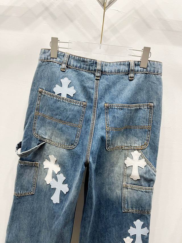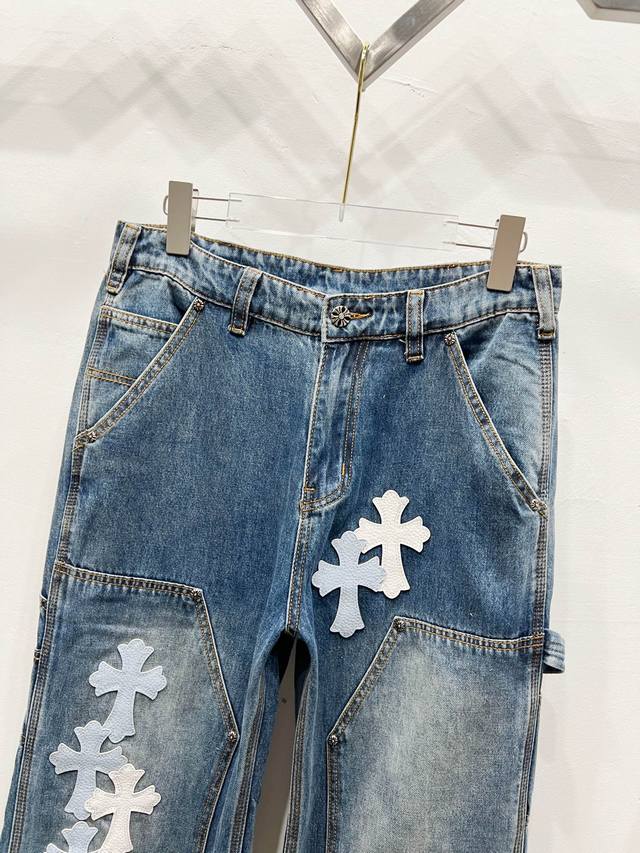 Chrome Hearts & Chrome Hearts 25Fw Ch Workwear Lumberjack White and Blue Leather Limited Edition Cow King Jeans