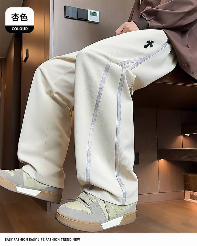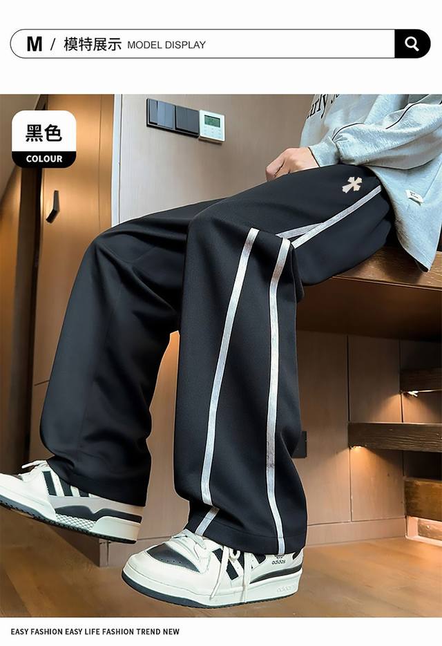 Pants with loose fit and perfect details woven fabric, wear-resistant and stain-resistant three-dimensional tailoring, loose fit, three-dimensional leather label, will not crack or fall off after repeated washing. Unisex couple's style