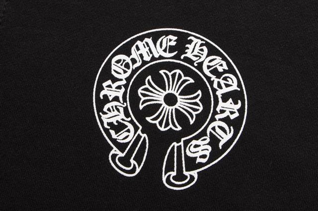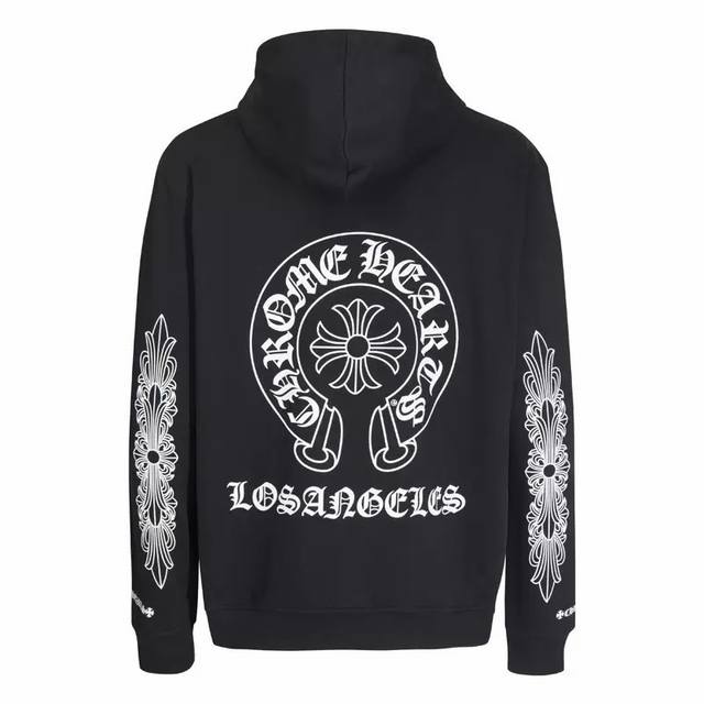 High-quality Chrome Hearts horseshoe-print cardigan zip-up jacket, unisex. Custom-made heavyweight 420g cotton terry fabric for a sturdy feel. Features front and back horseshoe and cross-arm designs, high-quality eco-friendly prints, custom Ch brand sword hardware, washed hangtags, and other accessories. The loose fit is comfortable for both men and women. Sizes: S-Xl