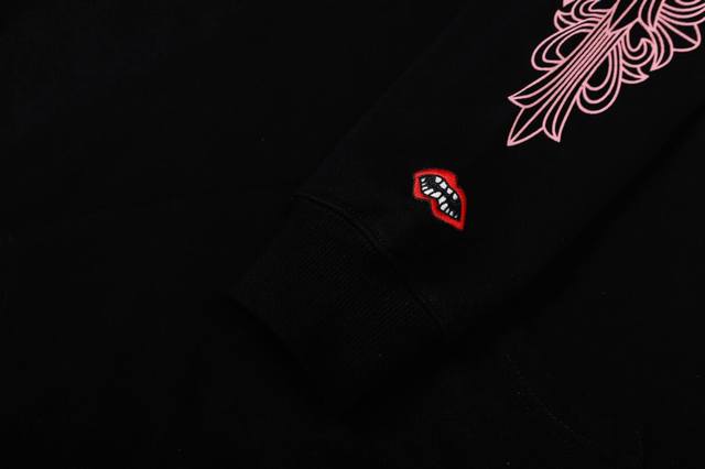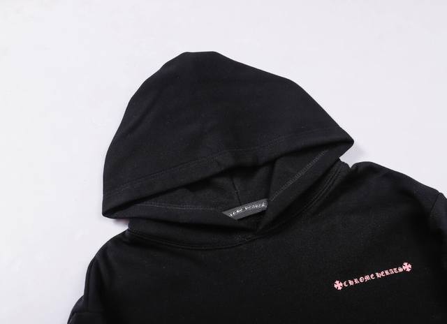 High-quality Chrome Hearts pink hooded sweatshirt with Sanskrit print and oversized arms, unisex. Made with custom-made high-weight 420g 100% cotton terry cloth, it feels thick and substantial to the touch. Features an overlapping Chrome Hearts cross design on the arms and a Sanskrit print around the back. Looks good on everyone! Eco-friendly print with vibrant, long-lasting colors. A must-have for any street style look. Comes with washing tags and other accessories. Relaxed fit, suitable for both men and women. Sizes: S-XL