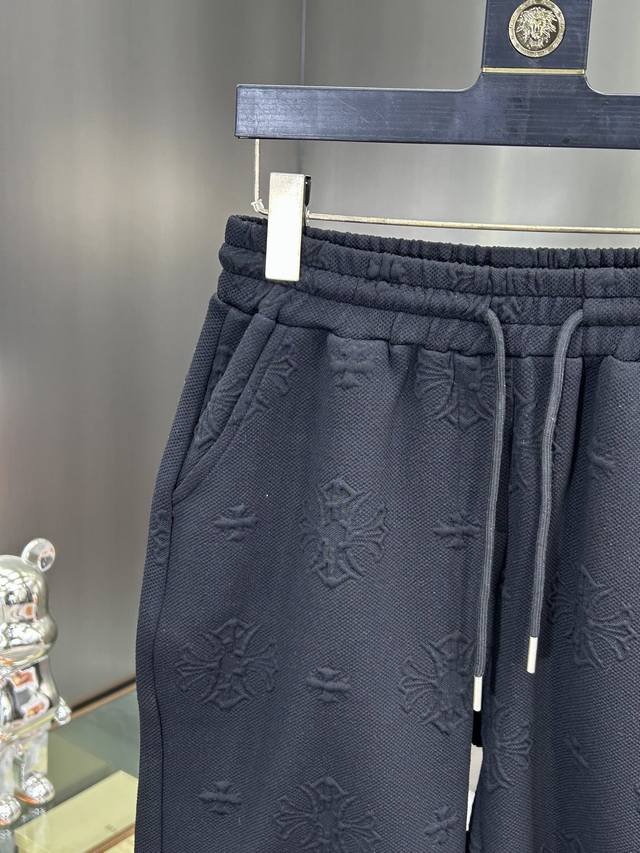 Jinc Chrome Hearts mainly promotes the new jacquard knitted shorts for spring and summer 2025. High-density jacquard knitting technology, tight and three-dimensional version, customized trouser rope hardware with strong texture, comfortable and breathable upper body, concave and convex three-dimensional sense, fashionable and casual wear