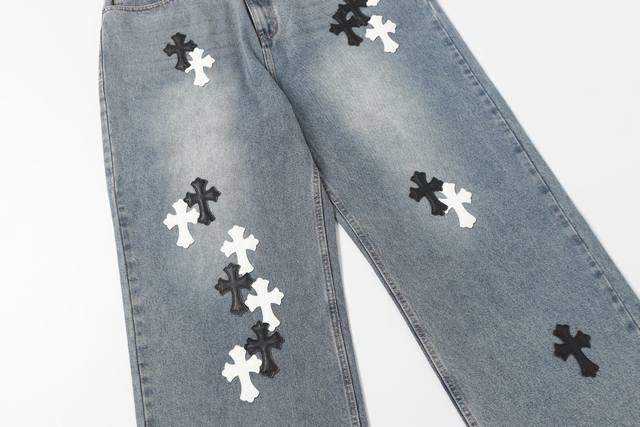 Ke301 DDD The only correct leather label version on the market DDD Chrome Hearts Ch Heavy-duty washed and distressed wide-leg jeans DDD Top-tier quality, 100% accurate version, here it comes! DDD Trust me, this is definitely the best quality you'll ever encounter !! Extremely high cost performance!! DDD DDD Different wash textures, very flattering for both slim and thick legs. The straight leg cut is very flattering and the timeless medium length makes it easy to style. A basic piece for various styles, a must-have in your wardrobe!! Add a little stacking for an effortlessly chic look DDD DDD The fabric is stiff yet soft against the skin without sacrificing texture. Some styles feature a seam wash effect on the sides and hems, it's really hard not to love! DDD DDD The Chrome Hearts metal leather label on the back of these jeans is a perfectly custom-made 1:1 replica, meticulously crafted to capture every detail. DDD DDD The cross leather label features clear, even stitching and exquisite workmanship
