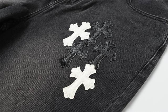 Ke305 DDD The only correct leather label version on the market DDD Chrome Hearts Ch Heavy-duty washed and distressed wide-leg jeans DDD Top-tier quality, 100% accurate version, here it comes! DDD Trust me, this is definitely the best quality you'll ever encounter!! Extremely high cost performance!! DDD DDD Different wash textures, very friendly to both slim and thick legs, the straight leg cut is very flattering, the timeless medium length is perfect, easy to match, a basic for various styles, a must-have in your wardrobe!! Add a little stacking to easily achieve a stylish look DDD DDD The fabric is stiff yet soft against the skin without sacrificing texture, some styles have a seam wash effect on the sides and hems, it's really hard not to love! DDD DDD The Chrome Hearts metal leather label on the back of these jeans is a perfectly custom-made 1:1 replica, meticulously crafted to capture every detail. DDD DDD The cross leather label features clear, even stitching and exquisite workmanship