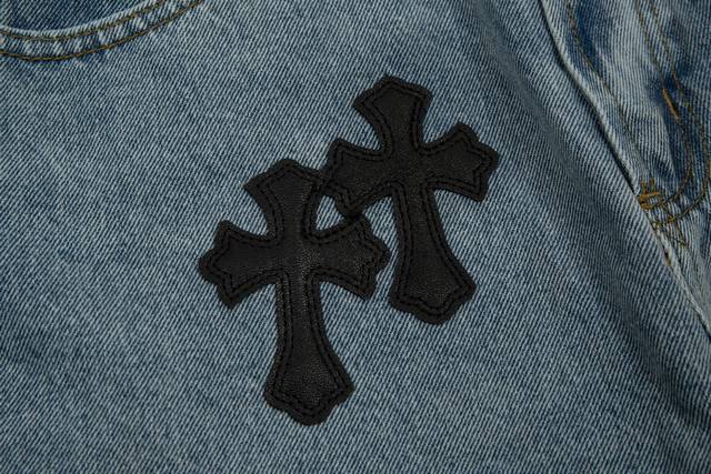 Ke919# Ddd The only correct leather label version on the market Ddd Chrome Hearts Ch Chrome Hearts cross embroidered distressed jeans Ddd Top-tier quality, 100% accurate version is here! Ddd Trust me, this is definitely the best quality you'll ever encounter!! Extremely high cost performance!! DDD Different wash textures, very friendly to both slim and thick legs, the straight leg cut is very flattering, the timeless medium length is easy to match, a basic style for various looks, a must-have in your wardrobe!! Add a little stacking to easily master this year's hottest Clean Fit DDD The fabric is stiff yet soft against the skin without sacrificing texture, some styles have a seam wash effect on the sides and hems, the vintage vibe comes out instantly, it's really hard not to love! Ddd's custom-made Chrome Hearts metal leather patch on the back is not a simply pasted cross onto finished jeans; it's a 1:1 replica, meticulously crafted with attention to detail. The cross patch features clear, even stitching and exquisite workmanship