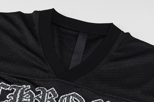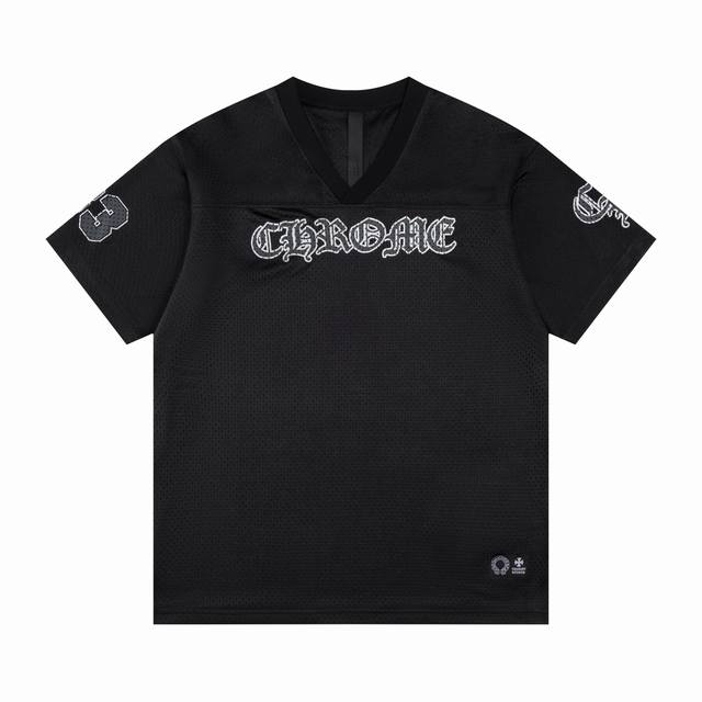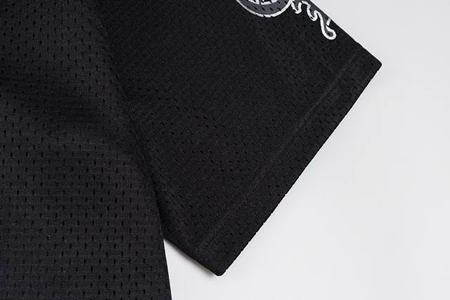 Chrome Hears latest short-sleeved mesh baseball jacket Thousand Eyes Graffiti Ice Hockey short-sleeved silky T-shirt is very cool to wear in summer. Letter print pattern Chrome Hears's single product this season is super good-looking and versatile. Chrome Hears' latest joint model counter genuine synchronous dyeing fabric unisex loose version drop shoulder width