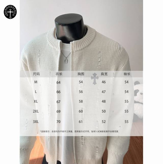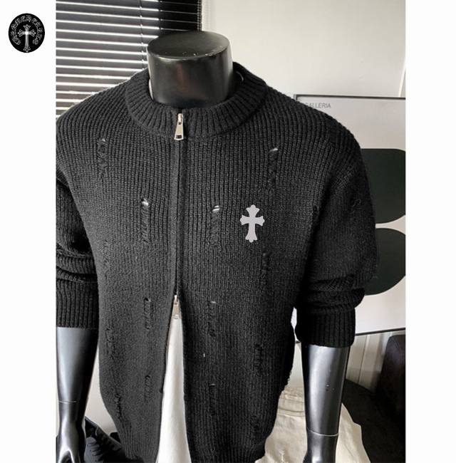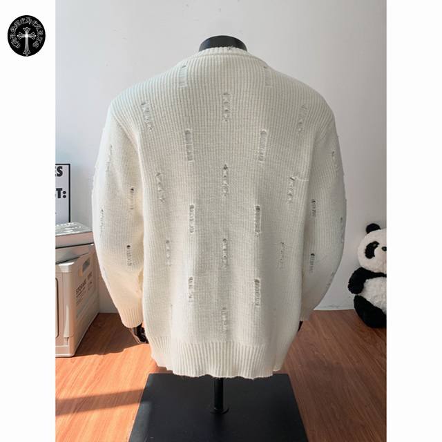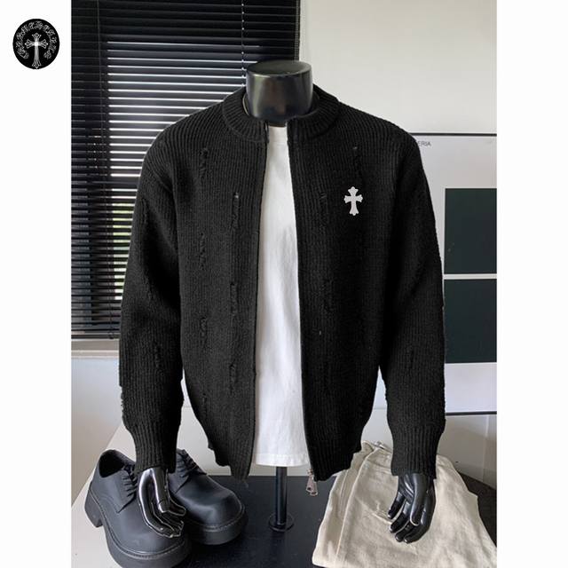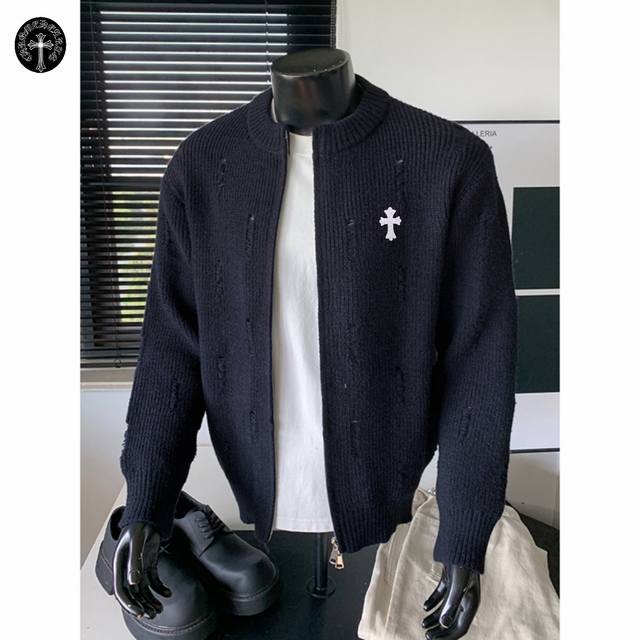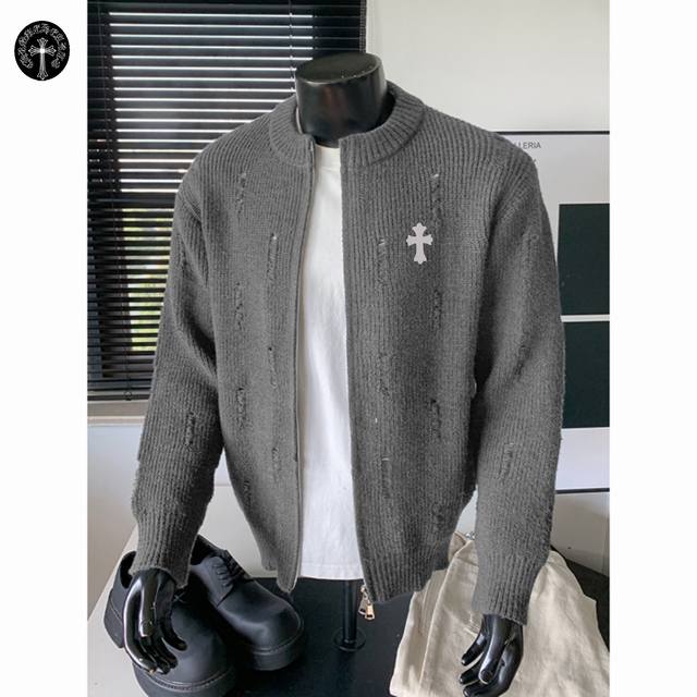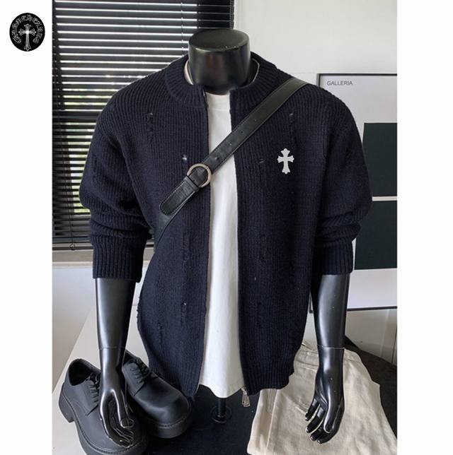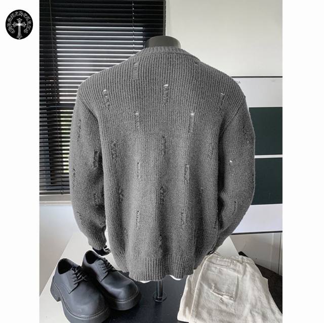 Chrome Hearts Autumn/Winter New Hong Kong Style Ripped Warm Round Neck Cardigan Sweater Jacket for Couples