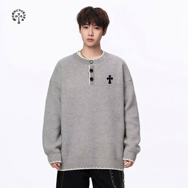 Chrome Hearts overseas version 25Ss new four-color hot-selling color-inserted fake two-piece couple sweater