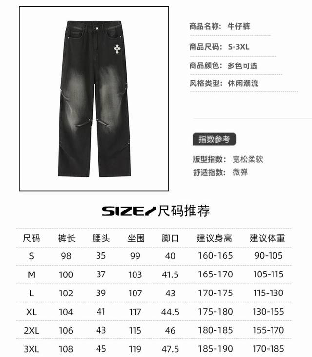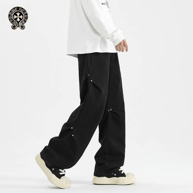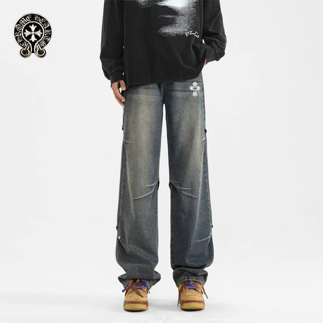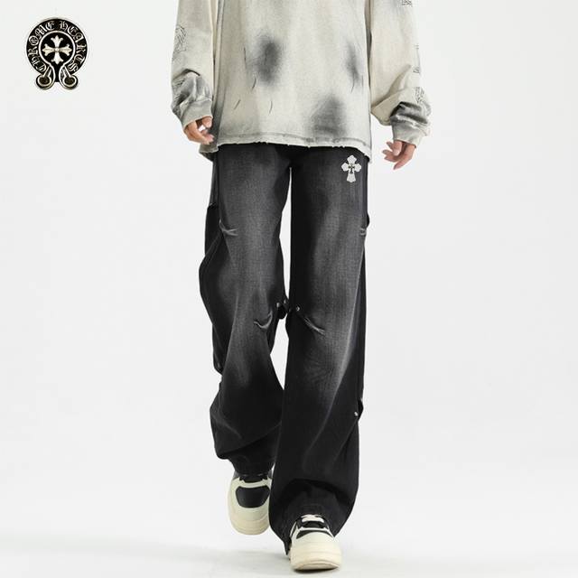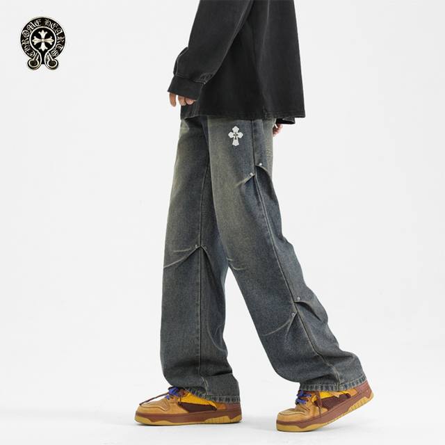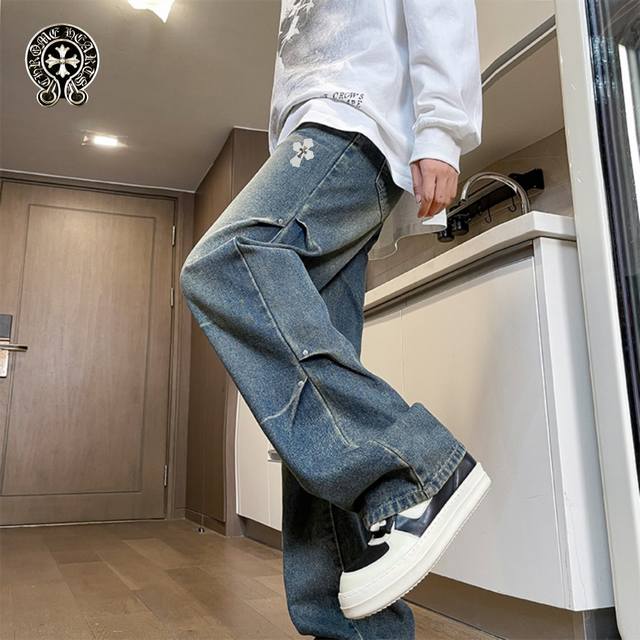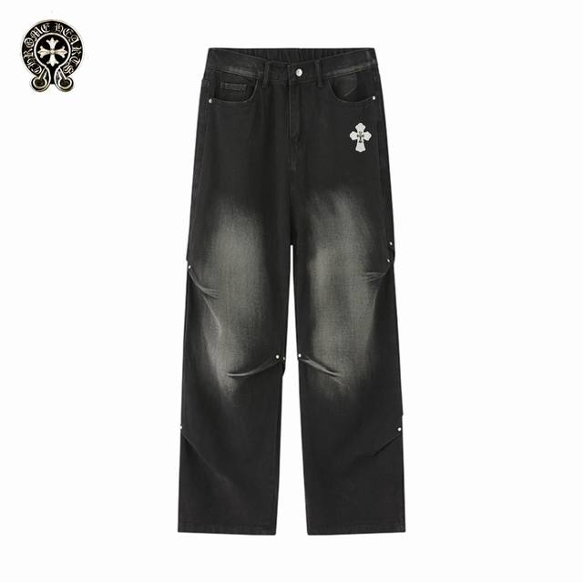 New Chrome Hearts four-season high street leather cross casual jeans. These jeans are high-profile and trendy. The denim cotton fabric is super stylish and elongates the body proportions, making you look taller. Pair it with high-top or low-top sneakers to look super cool. The effect is amazing! A must-have for trendy men and women who pursue quality. Don't miss it and keep it for yourself! Super textured and trendy, you must have it~ The stitching is neat! The fit is super good!