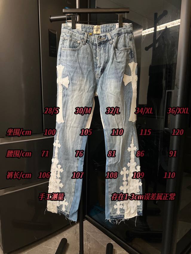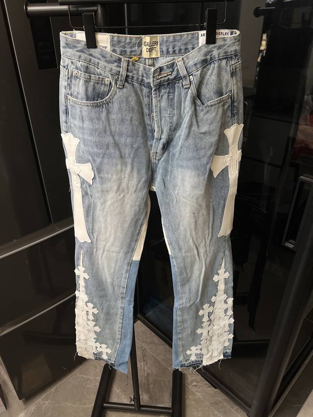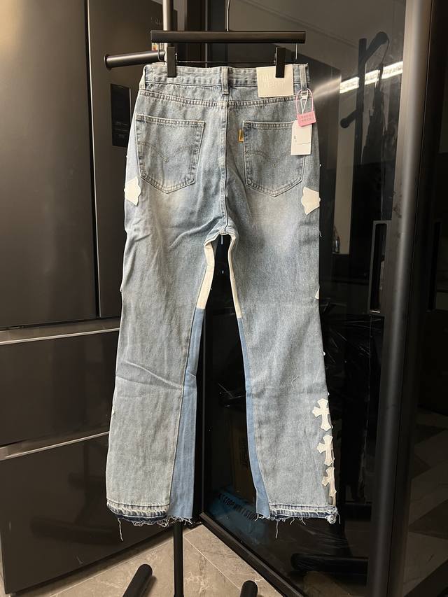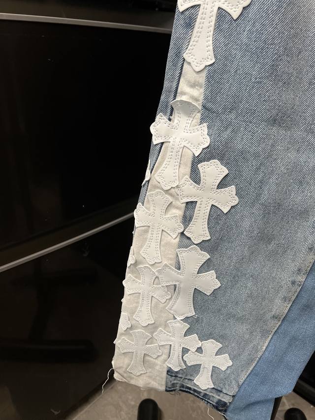 Next Day Ddd Chrome Hearts 25Ss Ch Chrome Patchwork Cross-Panel Heavy-Duty Jeans Blue DDD Size: 28 30 32 34 36 S-XXL For detailed size information, please refer to picture 9 DDD
