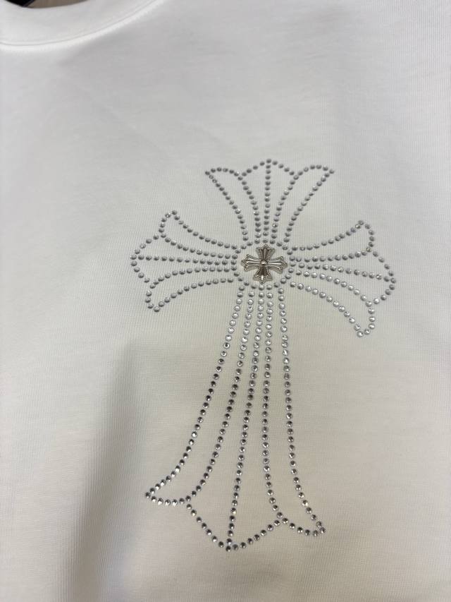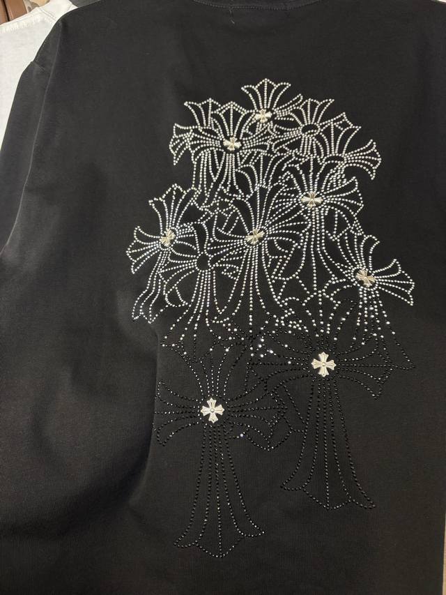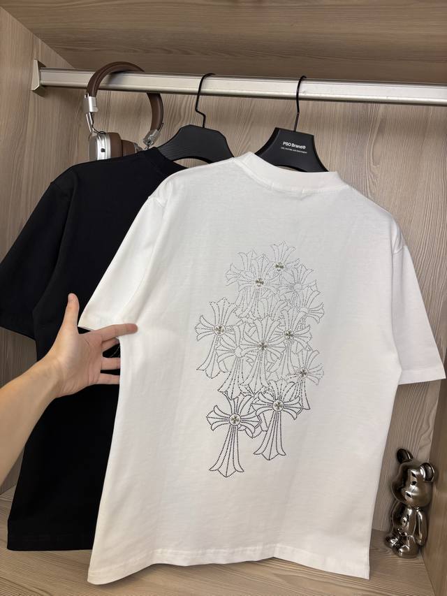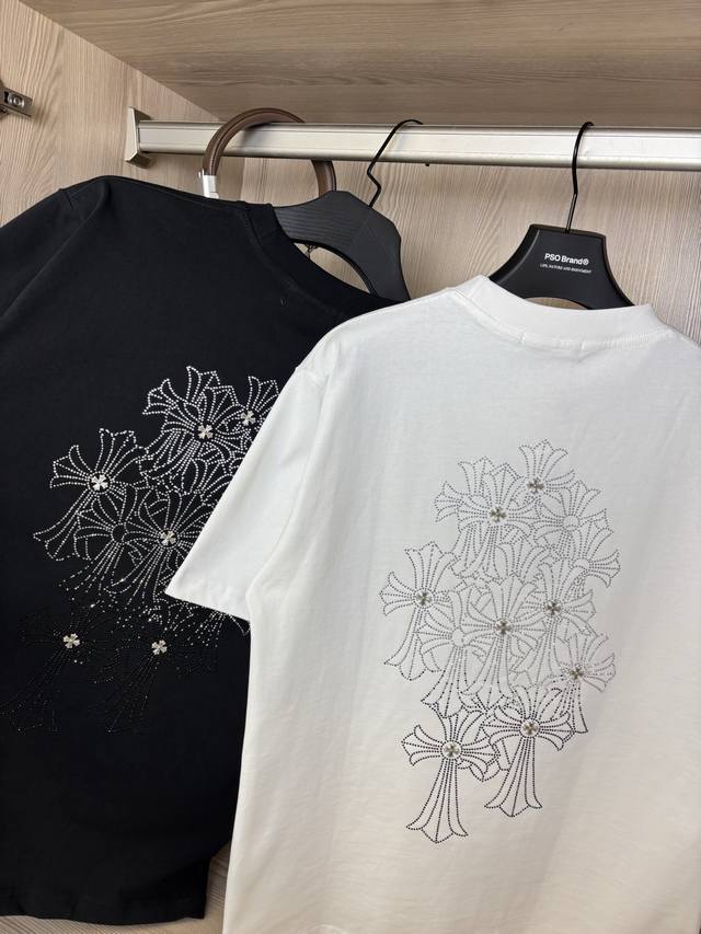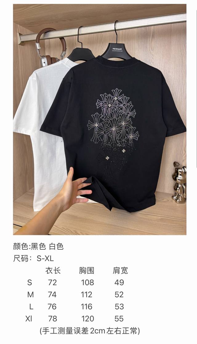 Sizes Available Style Number: Dc119# Chrome Hearts Rhinestone Phantom Gradient Cross Hot Rhinestone Short-Sleeve T-Shirt 280g Pure Cotton Double Sand Fabric. All fabrics have been pre-shrinked for optimal quality. What you see is what you get; the fit won't change after one wash, unlike some disposable garments on the market. All three labels and packaging are complete. Original design, custom-made, unisex, versatile, a classic style that's absolutely stunning. Colors: Black, White. Sizes: S-XL (See size chart in Figure 9).