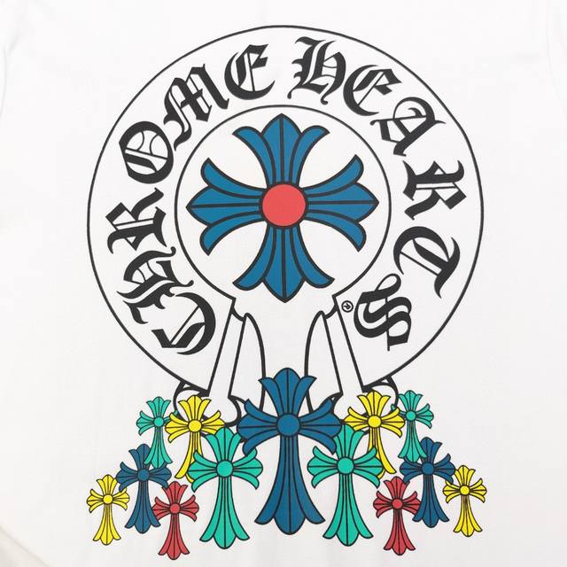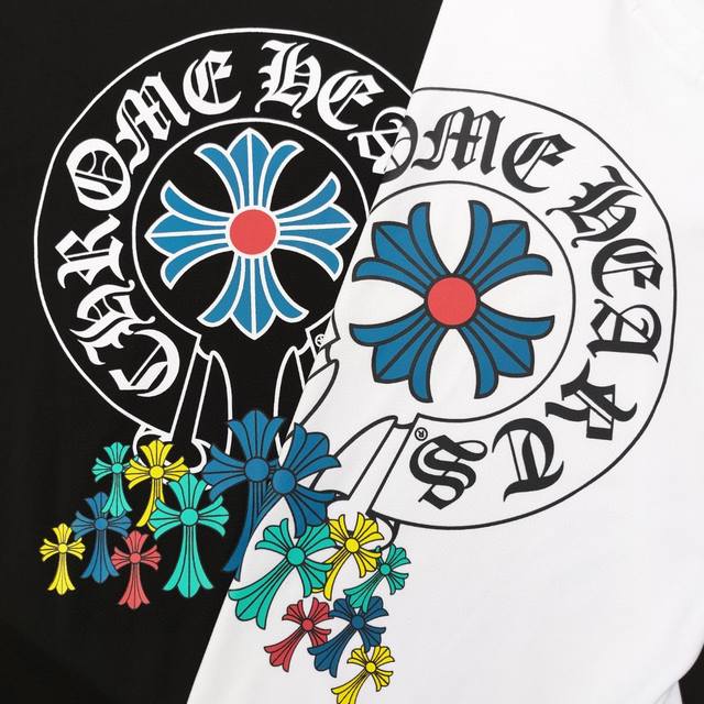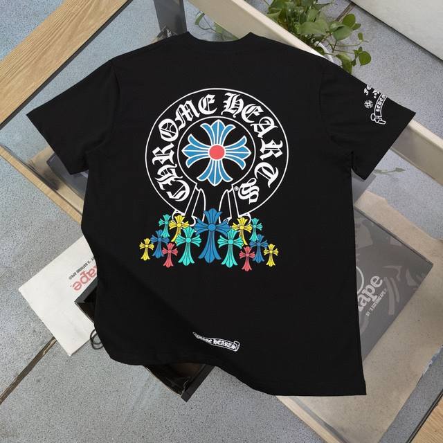 2025 Spring and Summer new Chrome Hearts Chrome Hearts colorful horseshoe cross Sanskrit printed casual couple short-sleeved T-shirt, customized fabric 250 grams of double yarn! Customized mold opening and identification collar label 100% silk washing label. Customized consistent stitching! The highest version of the armhole matching technique! Countless times of pattern making to restore the customized appearance 100%! The correct version, super eye-catching, super good-looking, super atmospheric, the same style for men and women!