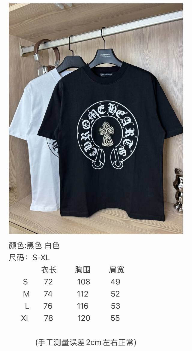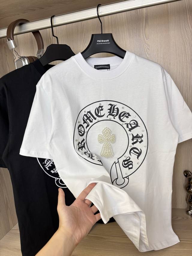 Special Price, Two Colors, All Sizes Available Style Number: Dc85# Chromeheart Heavy-Duty 3D Pearl Inlaid Handmade Diamond Round Neck Printed Short-Sleeve T-Shirt 280g Pure Cotton Double Sand Fabric, Original Label, Fits Up to 200kg. All fabrics have been pre-shrinked for the best quality. What you see is what you get. The fit won't change after one wash, unlike some disposable clothes on the market. All three labels and packaging are complete, original reproduction, custom-made, unisex, versatile, a classic style, absolutely stunning. Colors: Black, White Sizes: S, M, L, XL