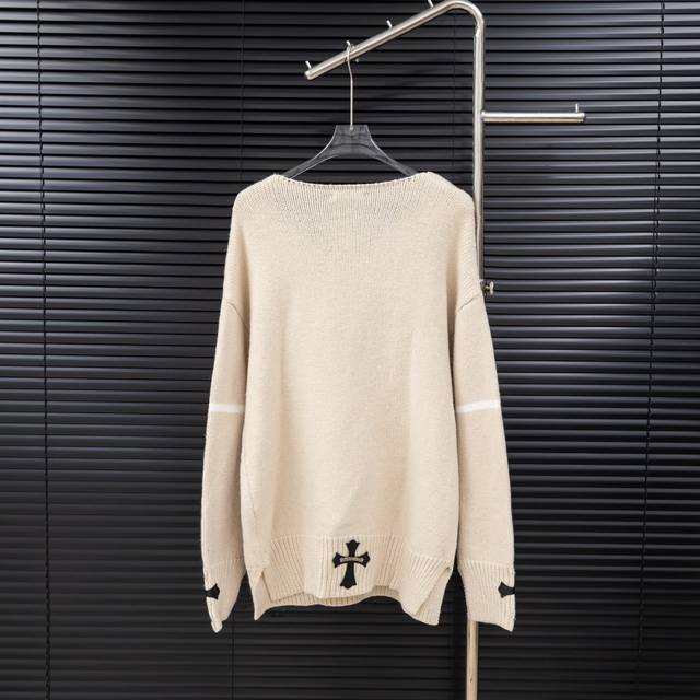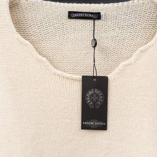 Style: Chrome Hearts Ch Cross Leather Label Distressed Frayed Edge Long Sweater Size: S-XL Fabric: Wool Blend Accessories: Full Set of Custom Original Accessories Unisex