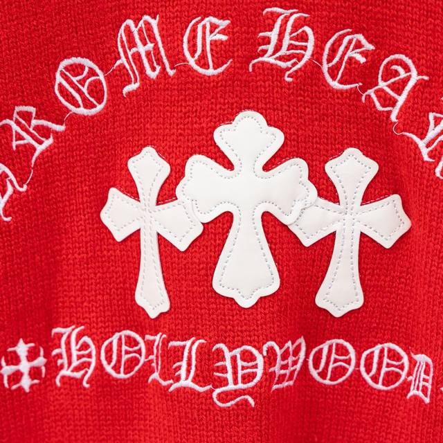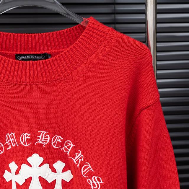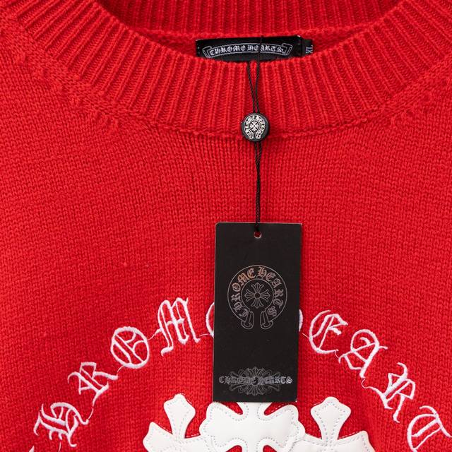 Style: Chrome Hearts Ch cross leather label embroidered knit long sweater Size: S-XL Fabric: Wool blend Accessories: Full set of custom original accessories Unisex