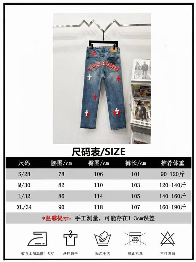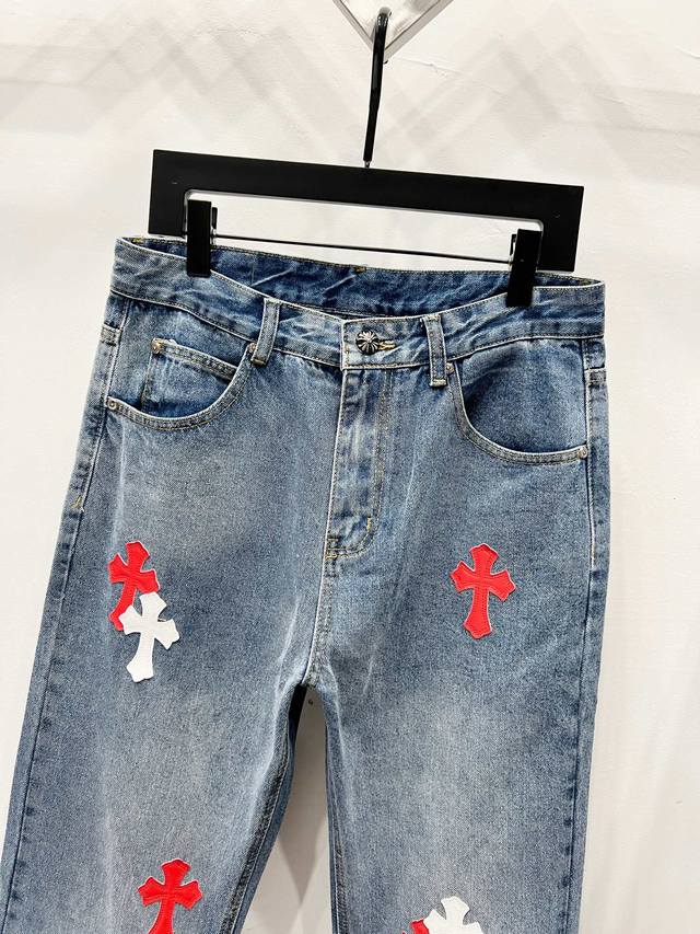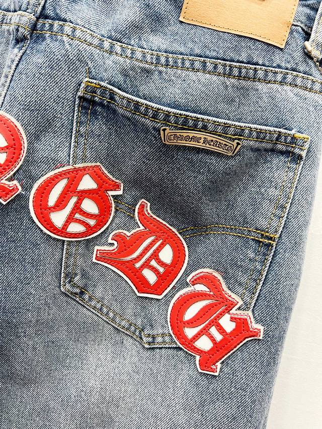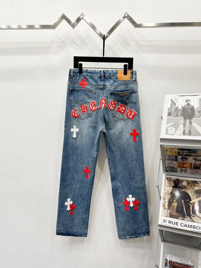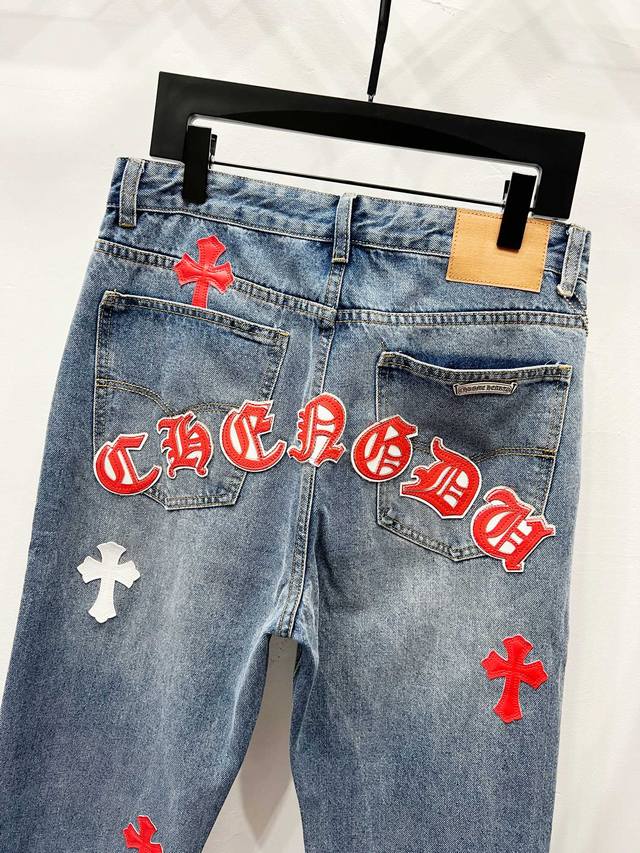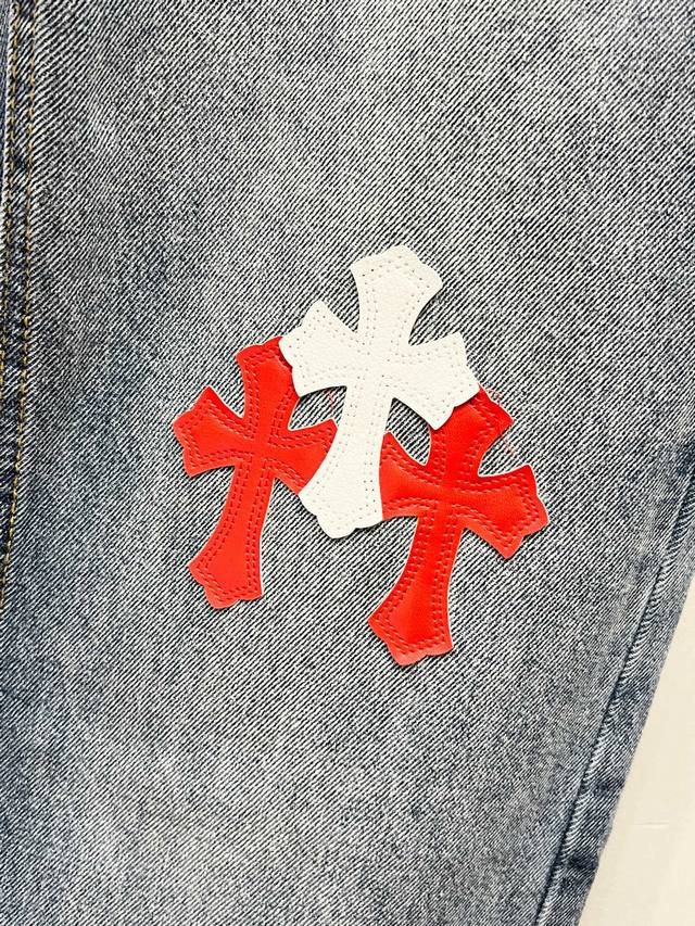 Chrome Hearts & Ch City Limited Series Sanskrit Cross Patch Leather Jeans