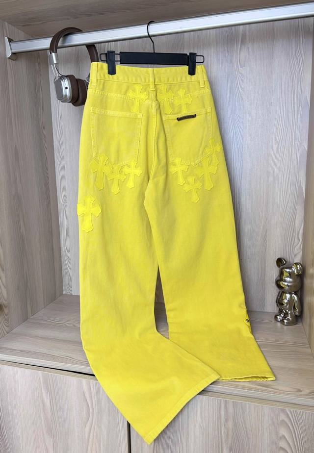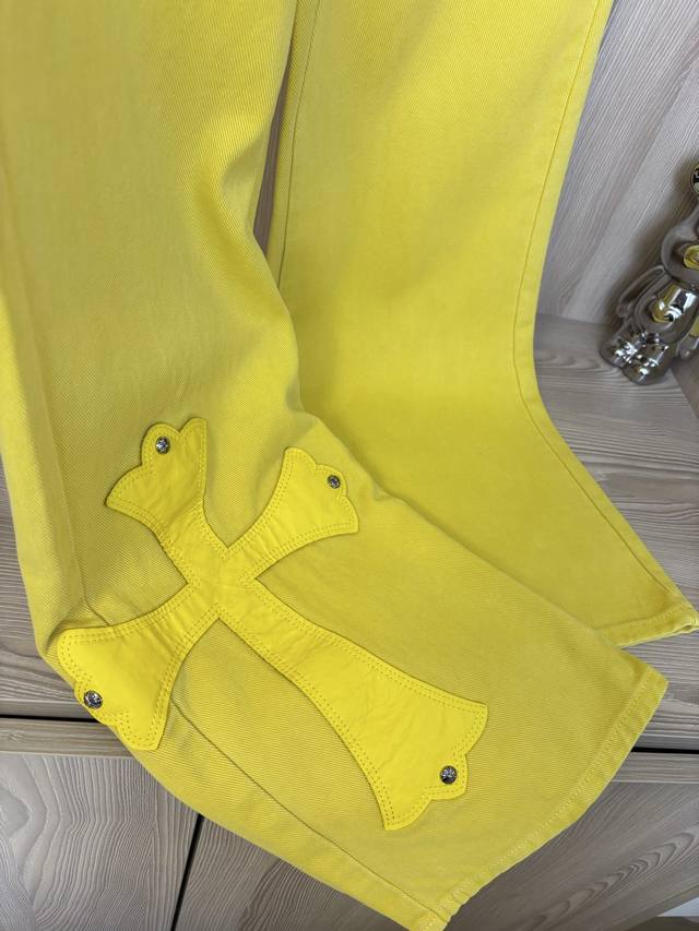 Style No.: Dc 55# Ddd Chrome Hearts Ch Fan Chengcheng's New York Limited Edition Large Leather Label Dopamine Yellow Jeans DDD Made in Italy with Special Cowhide Print, Recut Custom-Made Sheepskin, Three-Layer Coarse-Threaded Leather Patches, Overall Stitching, Heavy Water Washing Process, Craftsmanship Hand-Splashed Ink Details You Can See Ddd Three-Dimensional Cut, Loose and Comfortable Fit, Flattering and Slimming, High-Quality Factory Craftsmanship, Original Factory Quality Control, Unisex Style, Can Be Used as Couple Outfit, Versatile Recommended, Must-Have Jeans for All Seasons DDD Color: Lemon Yellow Ddd Sizes: SML XL (See Size Chart in Figure 9) DDD
