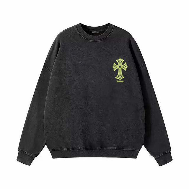 Chrome Hearts Washed Distressed Print Crew Neck Terry Sweatshirt, Upgraded Fabric, Exclusive to the Market