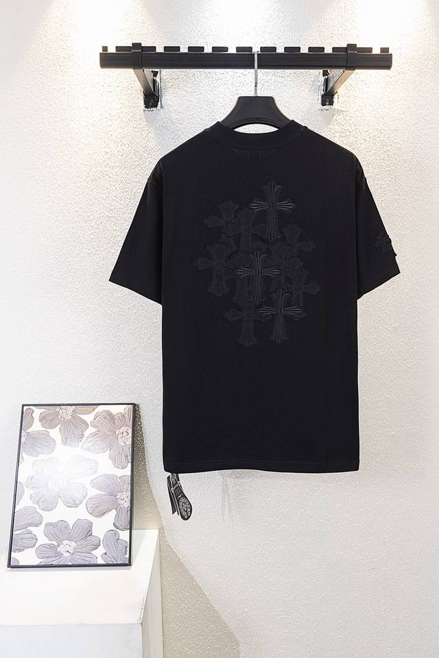 Chrome Hearts Ch 25Ss Summer, 320g high-weight brushed washed double yarn fabric with Sanskrit letter embroidery, understated luxury. The mosaic-like colorful embroidered Sanskrit on the front is super beautiful, while the large embroidered back is meticulously detailed and textured. A must-have item for men's and women's everyday commuting wear. Correct version, welcome to compare! High-weight enzyme-washed custom-woven fabric, distressed wash finish, through-the-shoulder neckline, double-strand four-stitch positioning! Custom main label, unisex!