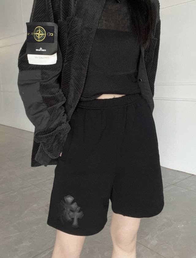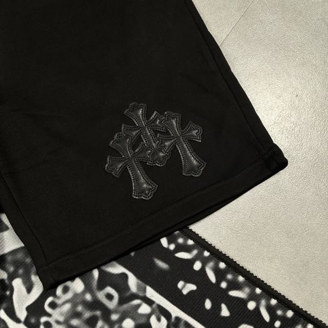 Chrome Hearts 23Ss heavy-duty leather embroidered iron button logo webbing shorts