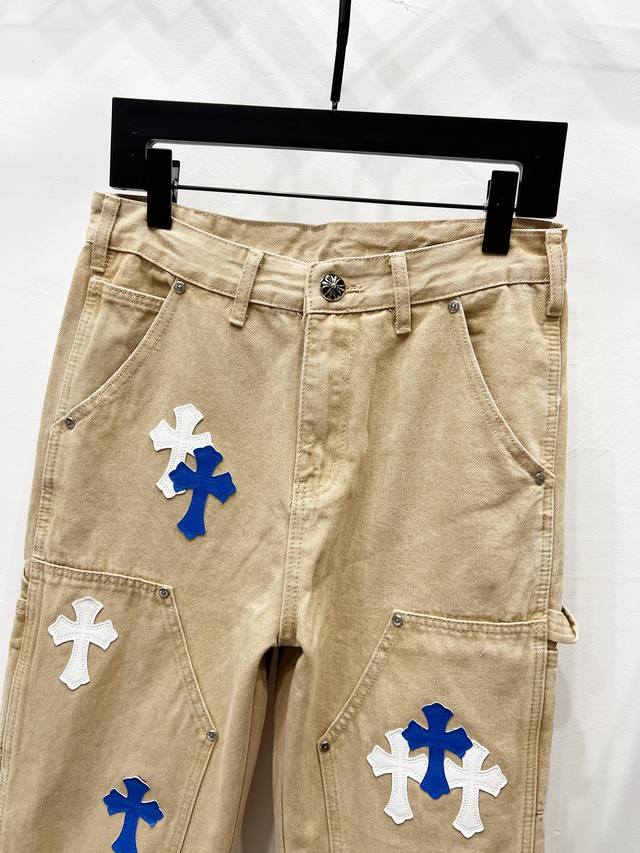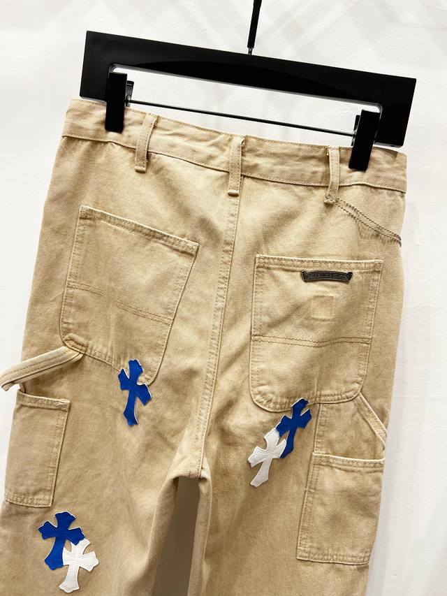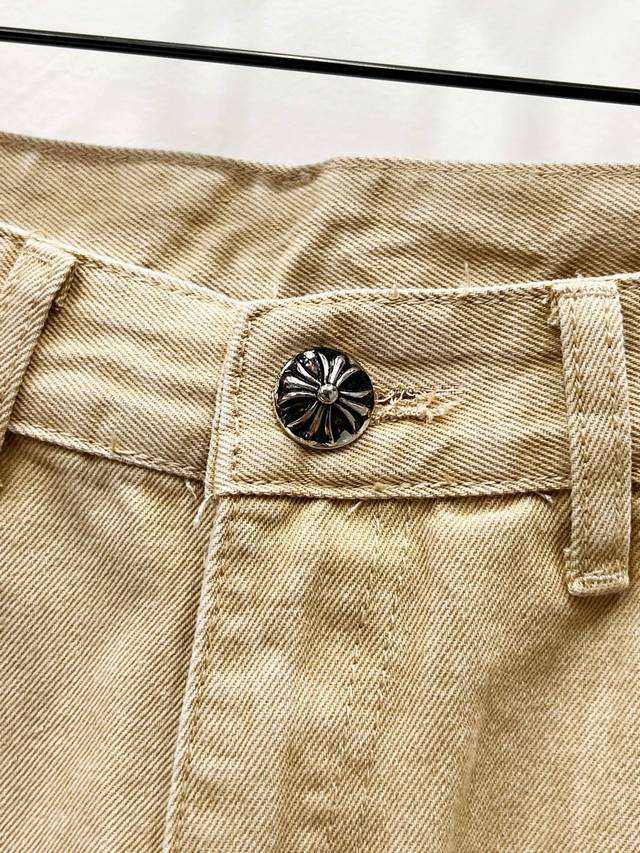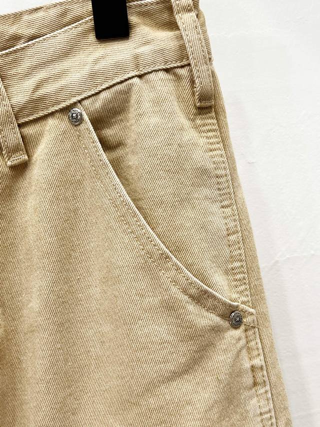 Hardware Zp customization, the pearl canvas fabric is thick and soft after washing. It has good breathability. The customized small leather label has a unique design with ingenious details. It is simple and generous, with exquisite workmanship. The whole pants have neat lines and details!