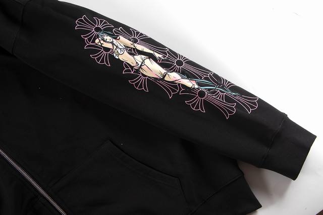 Style Number Tq33 Chrome Hearts Sanskrit Letter Print Miami Hot Girl Pink Print Zip-Up Sweatshirt DDD