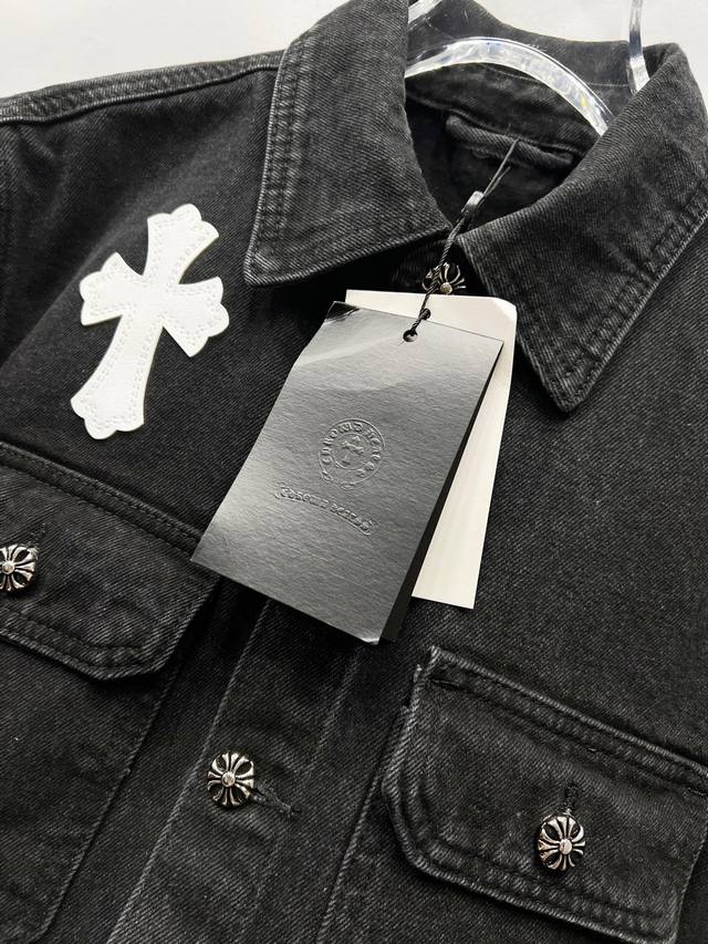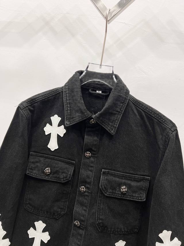 Chrome Hearts Cross-Patch Leather Embroidered Shirt Jacket