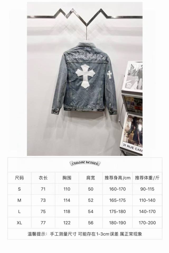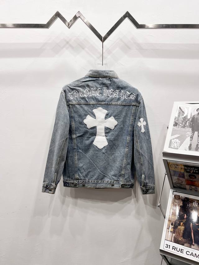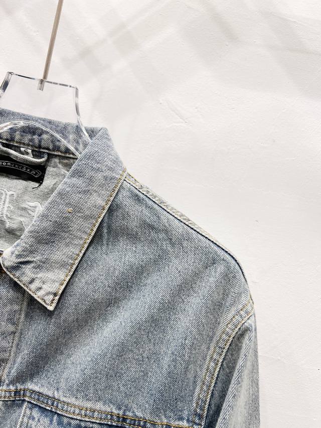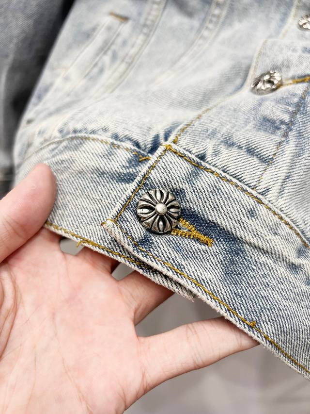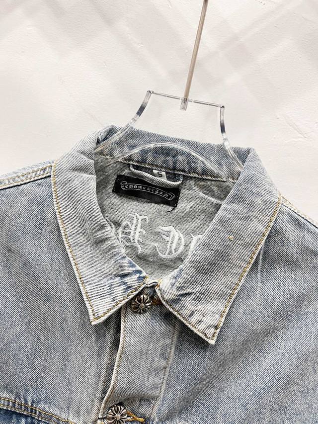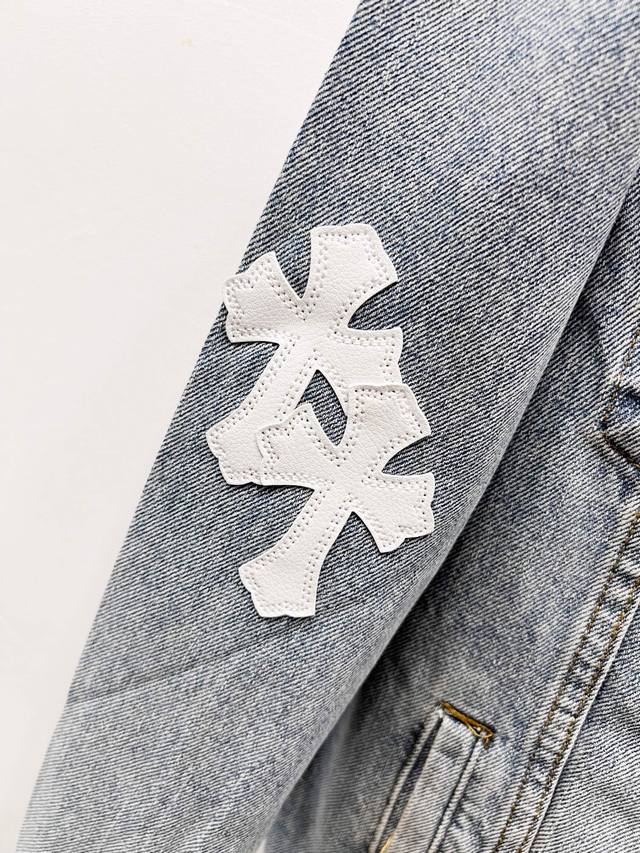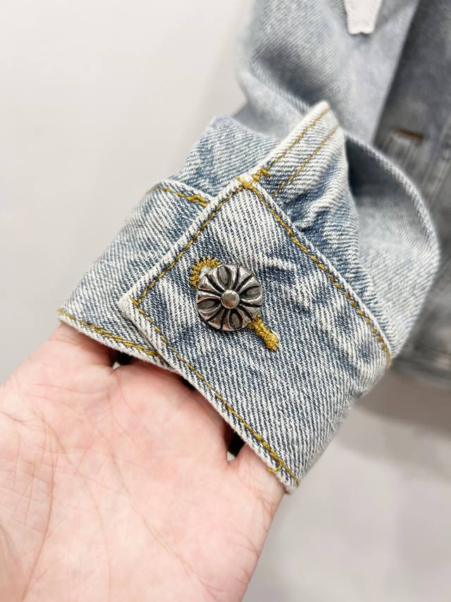 A super-hit item has arrived, perfect for this weather. A cool oversized style, the classic white cross logo is featured throughout, and the large leather cross patch on the back is the finishing touch. Elegant and full of personality, without any exaggeration, it's a perfect spring and summer style! Made of heavyweight, coarse yarn, 100% denim cotton, it's heavily washed, ensuring a crisp, tough silhouette while being skin-friendly, comfortable, and breathable. The high-density embroidery of Sanskrit letters is exquisite, and the custom-made buttons, cross leather patch, and Chrome Hearts signature silver details add a touch of luxury! The relaxed, casual fit is perfect for both men and women, and it pairs effortlessly with sweatpants or wide-leg pants. It's versatile and would be a stunning outerwear piece for spring and fall.