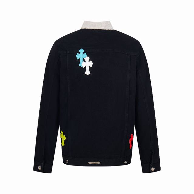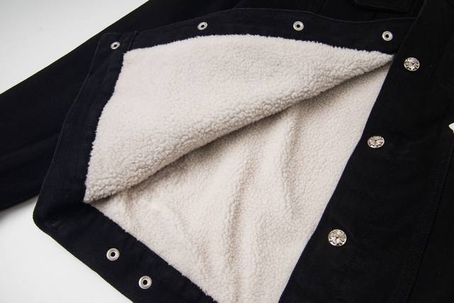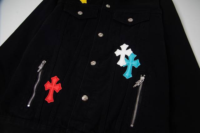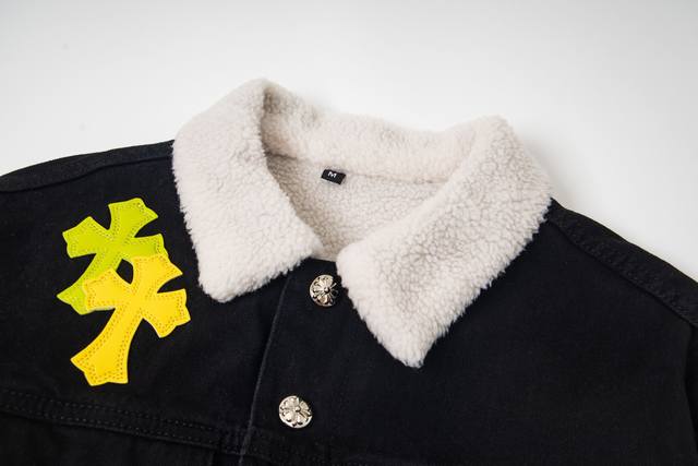This high-end Chrome Hearts leather and lambswool denim jacket is unisex and made from heavyweight, coarse-count 100% denim cotton, ensuring a crisp, tough silhouette while remaining comfortable. The silver-buttoned lapel adds a touch of class. Made from premium lambswool, it's incredibly windproof and warm, ensuring warmth through fall and winter. The perfect fit is perfect for both men and women!