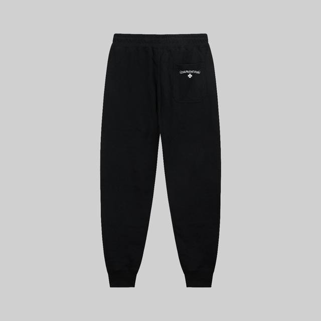 Top-tier version, distinguishing it from regular quality. Chromehearts Fall/Winter Runway Slim Fit Minimalist Print Letter Logo Sweatpants, 360g, suitable for all body types. Features include an elastic waistband, black and white drawstring design, custom drawstring pockets, slanted side pockets, and a small back pocket. Colors: Black, Gray. Sizes: S-XL.