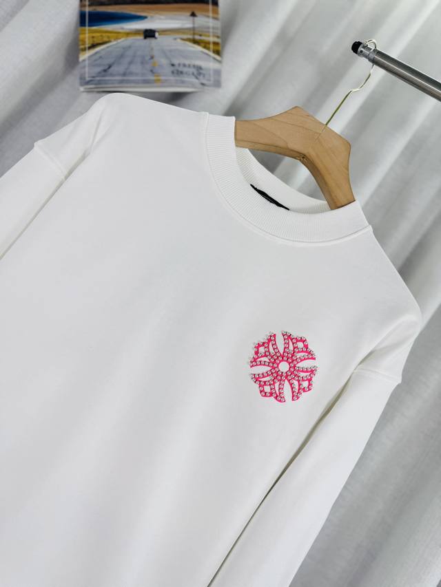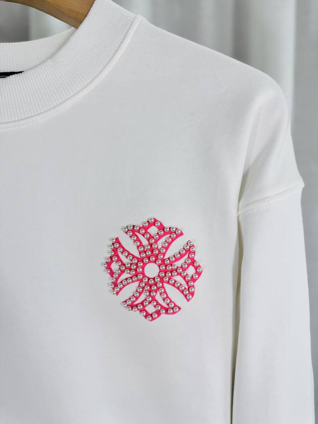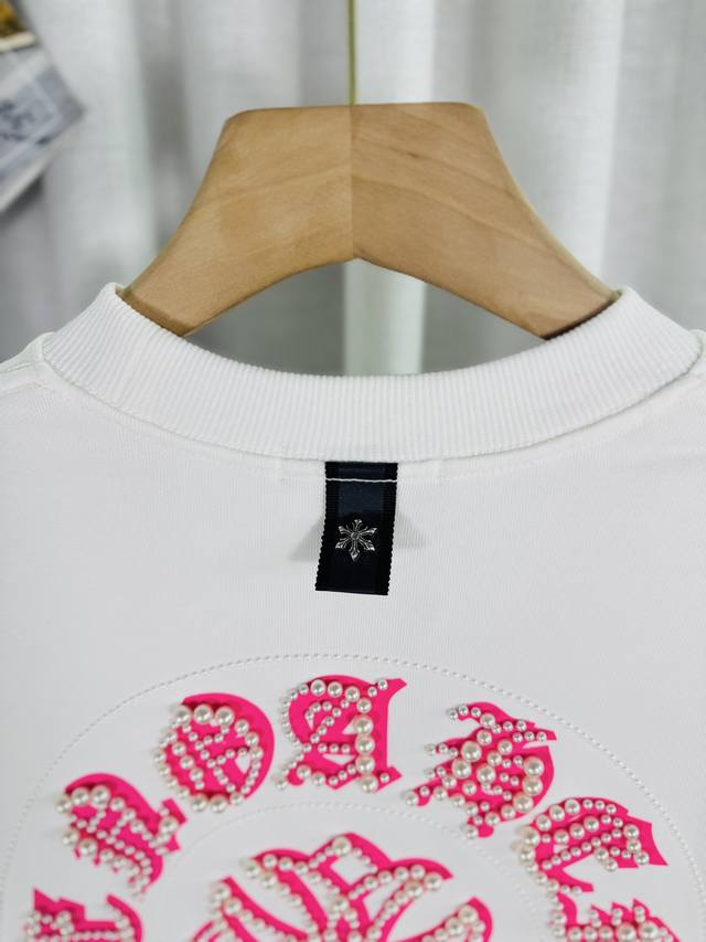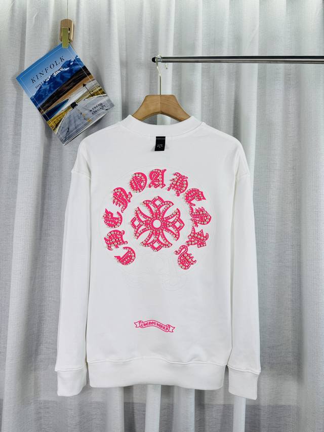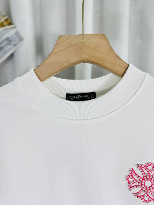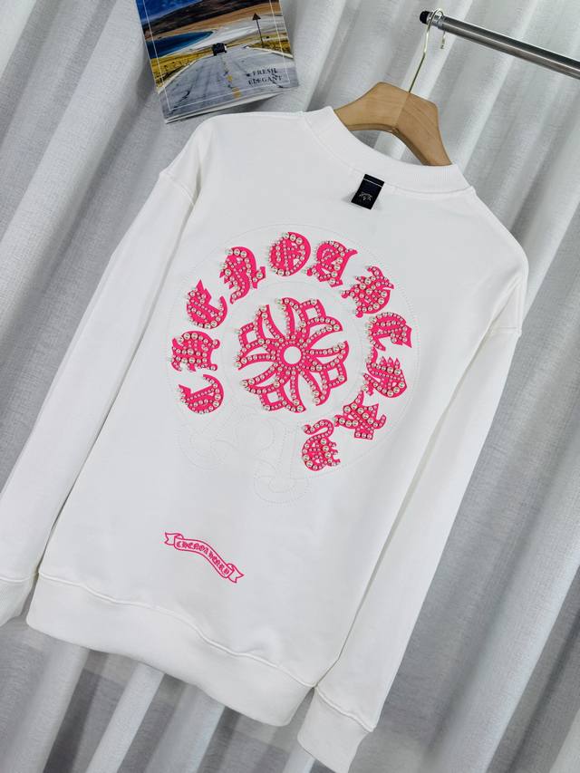 Top-tier version, real photos, no Photoshop, distinct from market goods. Chrome Hearts 2025 Reflective Embroidered Beaded Compass Embroidery Autumn/Winter New Original Single Counter American Laser Burnout 3D Pearl Embroidery Couple Casual Sweatshirt. Highest version! Customized 420g cow belly terry cloth fabric! American acid washed distressed original fabric laser burnout appliqu