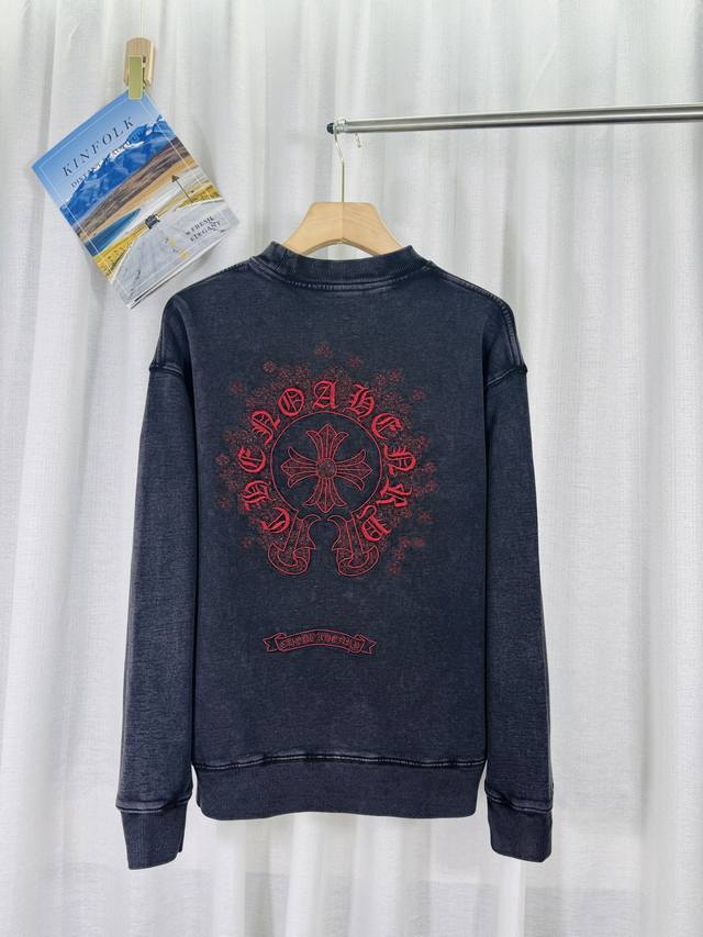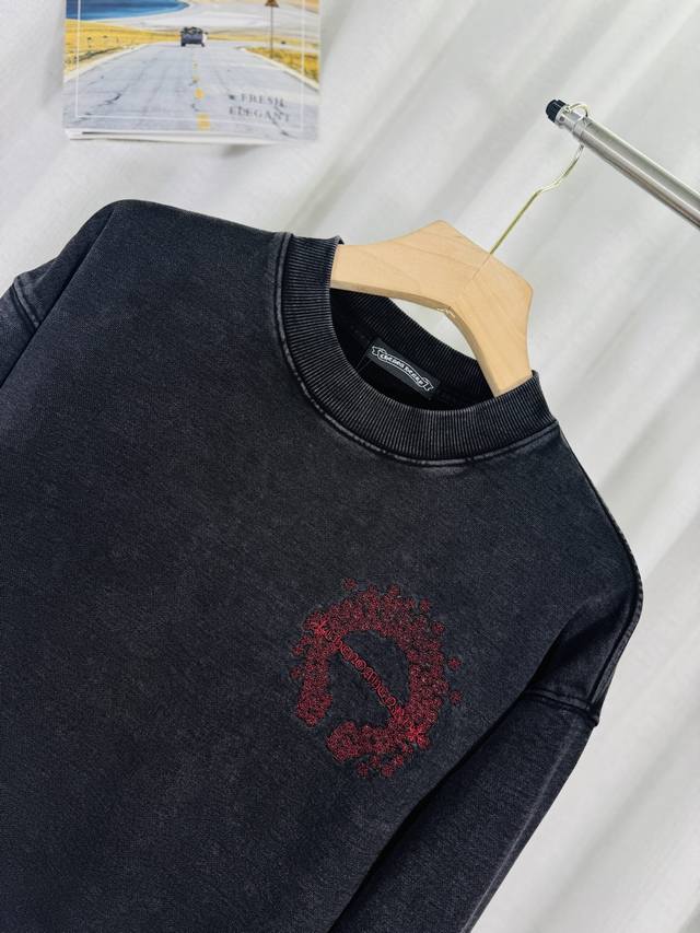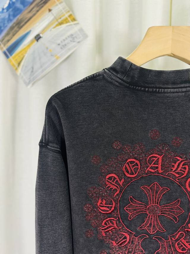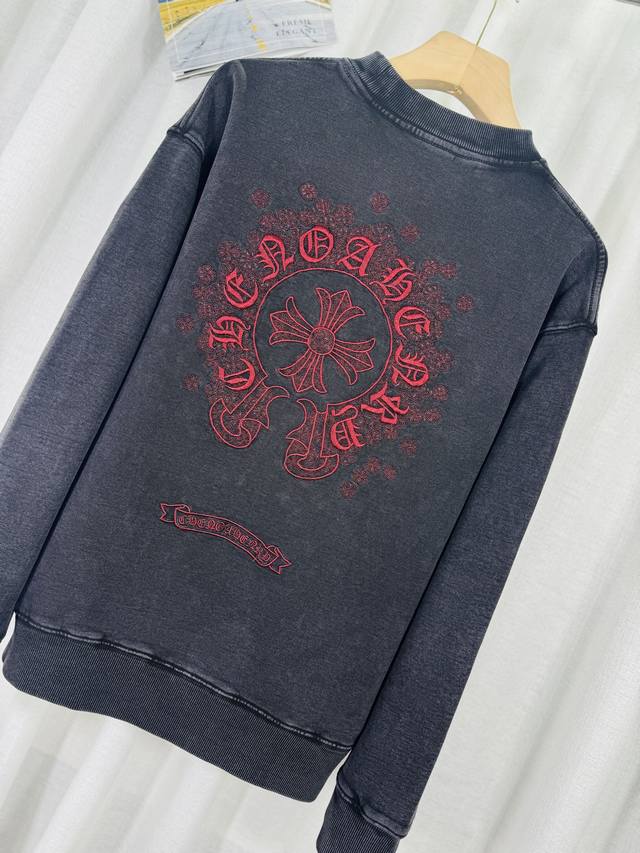 Top-tier version, real photos, no Photoshop, distinct from market goods. Chrome Hearts 2025 Washed Applique Embroidery Autumn/Winter New Original Single Counter American Laser Burnishing 3D Three-Dimensional Color Embroidery Couple Casual Sweatshirt. Highest version! Customized 430g cow belly terry cloth fabric! American acid washed distressed original fabric laser burnishing applique embroidery lettering exquisite embroidery! Hot-selling counter style, very comfortable to wear. Accessories: Original mold, authenticated neck label, % silk washing label. Authentic purchase level original hangtag, matching 3D hang tag, original packaging bag. Craftsmanship: Original stitching! Armhole matching technique, highest version! Colors: Gray, Black . Sizes: S, M, L, XL. Style Number: 9301 .