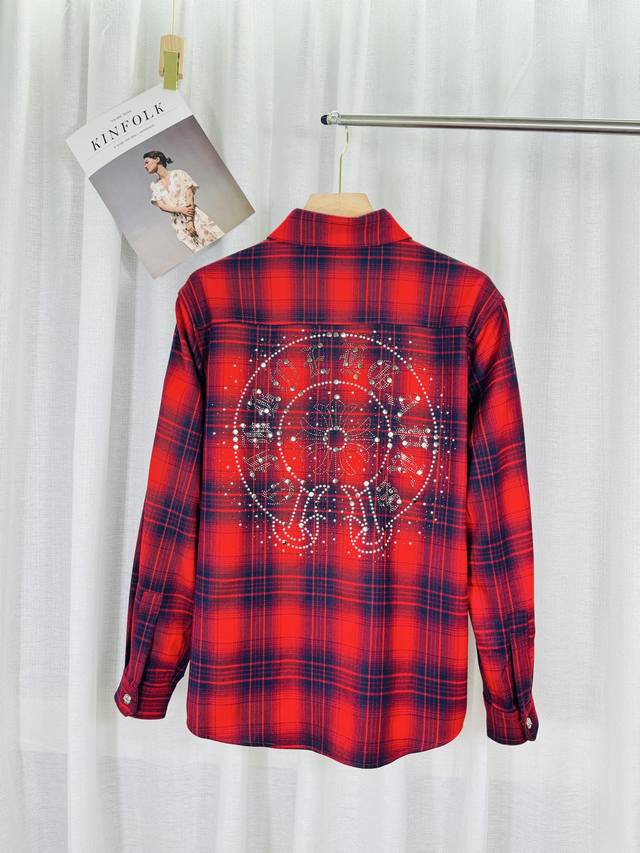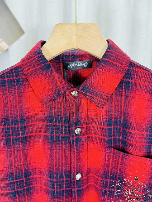 Top-tier version, real photos, no Photoshop, distinguishing it from common market goods. Chrome Hearts 2025 rhinestone plaid shirt. Accessories: Original mold, authenticated neck label, 100% silk washing label. Authentic original hangtag, matching lanyard, 3D hang tag, original packaging bag. Craftsmanship: Consistent stitching with the original! Highest version armhole matching technique! Colors: Red, Black. Sizes: S, M, L, XL. Style Number: 8002.