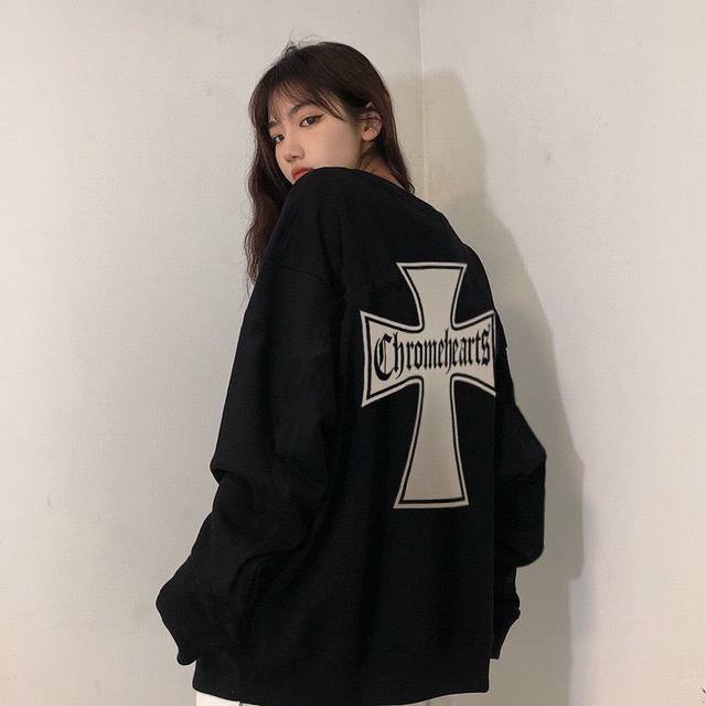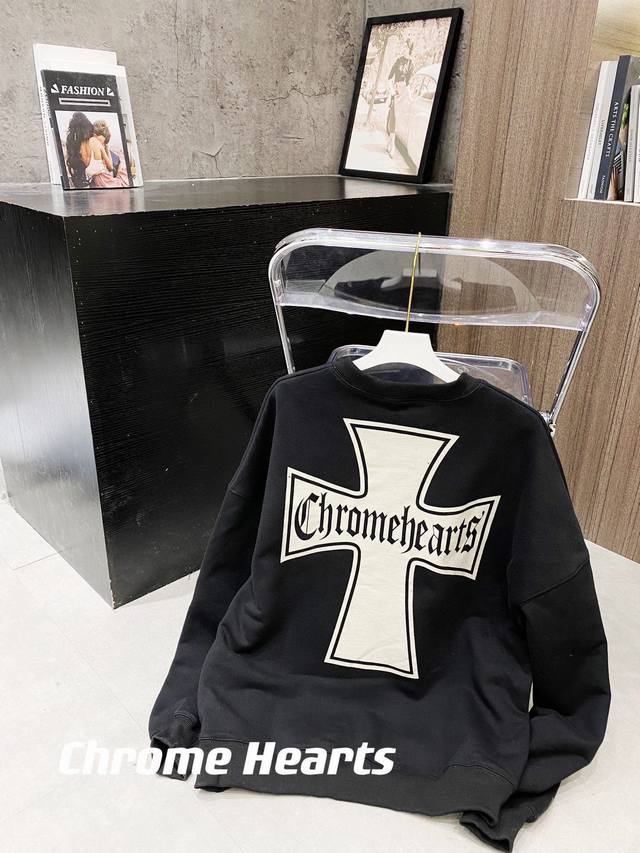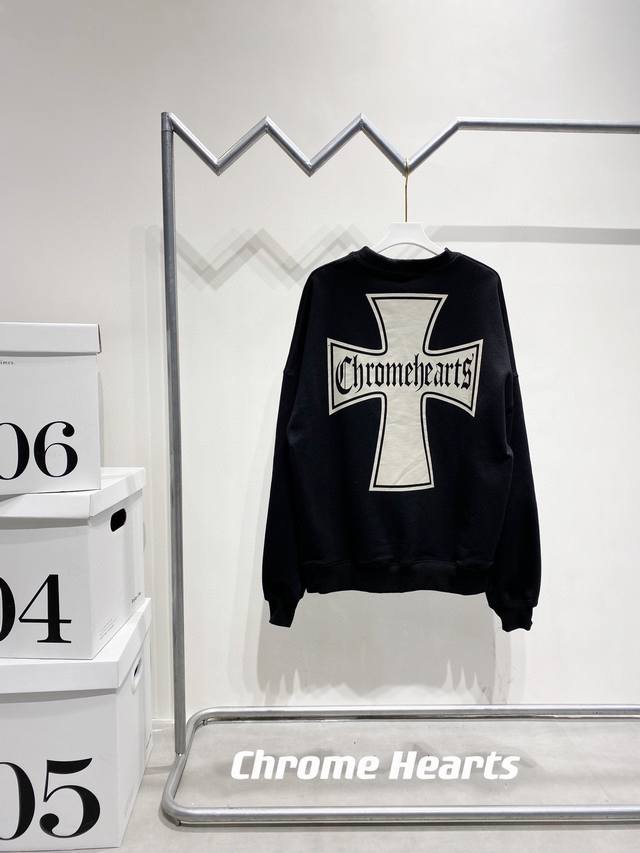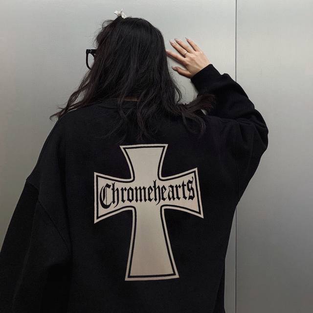 Updated terry cloth sweatshirt, style number 668. Chrome Hearts high-street style cross sweatshirt. Chrome Hearts is truly addictive! This sweatshirt is guaranteed to make you look stunning from behind. It proves that good-looking things transcend age and gender; everyone looks good in it. A top-tier sweatshirt. Cool dark style, oversized drop-shoulder design, unisex and can be paired with a couple's outfit. High-weight pure cotton fabric, unlike other terry cloth sweatshirts on the market, top quality. Not only cool but also very warm. Winter is coming, hurry up and get one! Color: Black. Sizes: M, L, XL, XL.