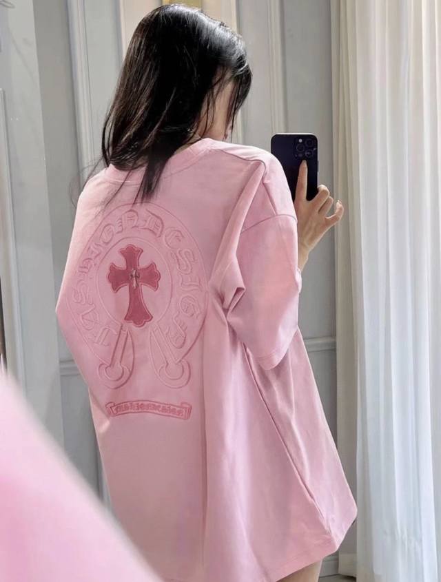 . Chrome Hearts 23rd anniversary limited edition, berry pink, three-color heavy leather logo with embroidered Sanskrit cross, three-dimensional embroidery. Exclusive hot sale