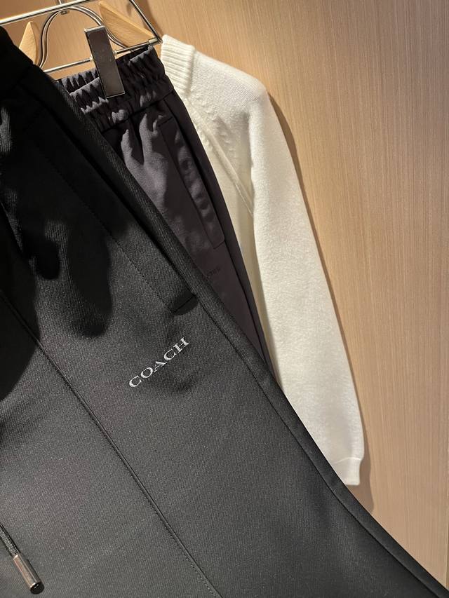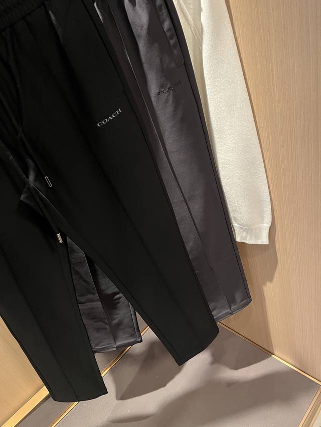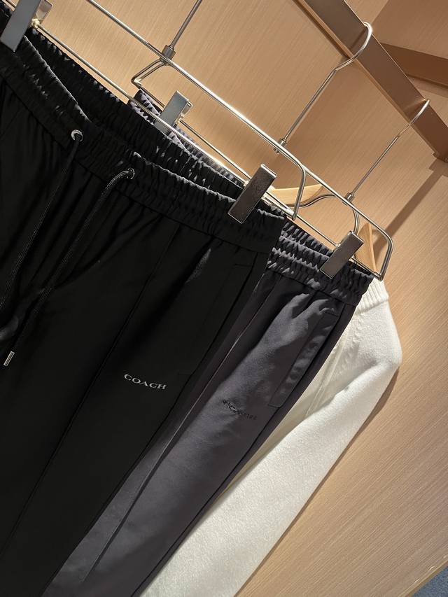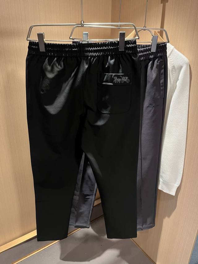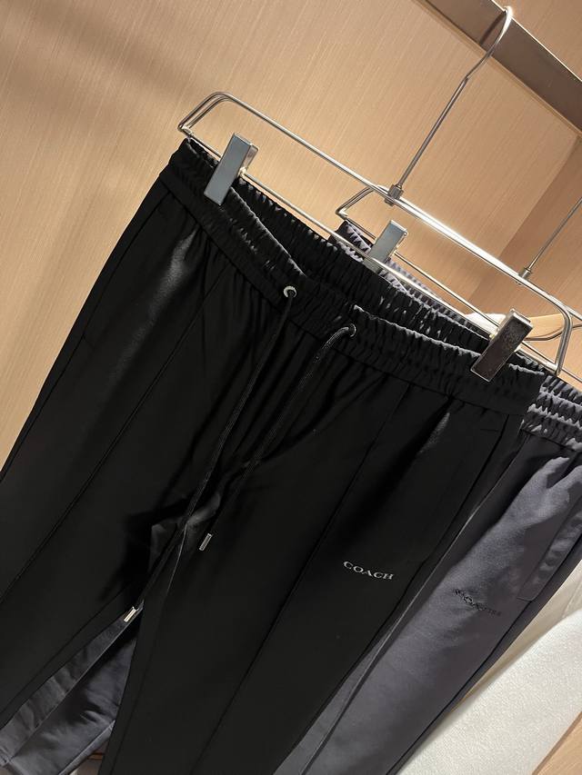 Coach 2025 Fall/Winter New Men's Casual Pants, a high-end quality choice. These versatile trousers combine an elastic waistband with a drawstring, making them an indispensable wardrobe staple. A classic and practical style! The design is simple and stylish, perfectly embodying understated luxury. They are incredibly soft against the skin, comfortable to wear, and feature a thoughtfully designed logo on the back. Made from premium spandex cotton, the fabric is comfortable, soft, and has a good drape. The clear, glossy texture gives them a high-quality look and exudes a sophisticated charm. The excellent straight-leg cut and meticulous stitching make these trousers easy to style and versatile. Grab yours now