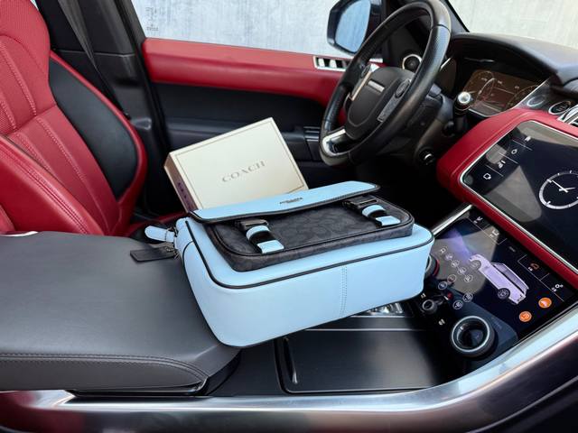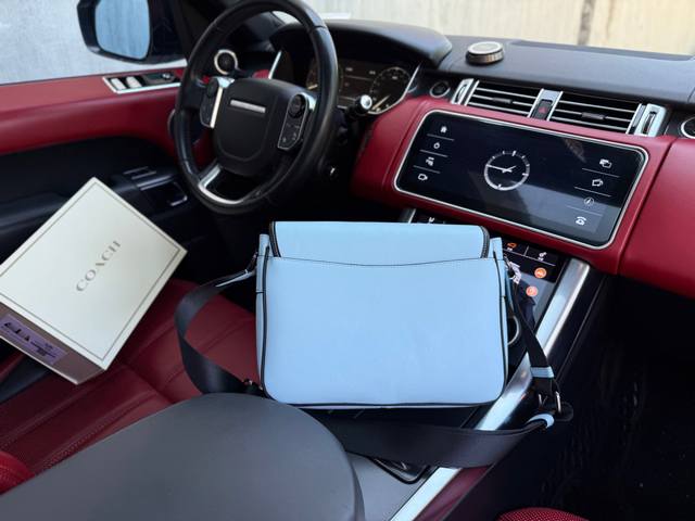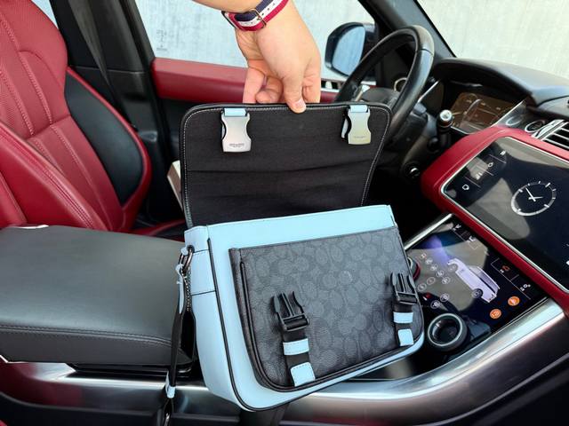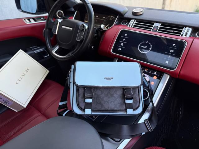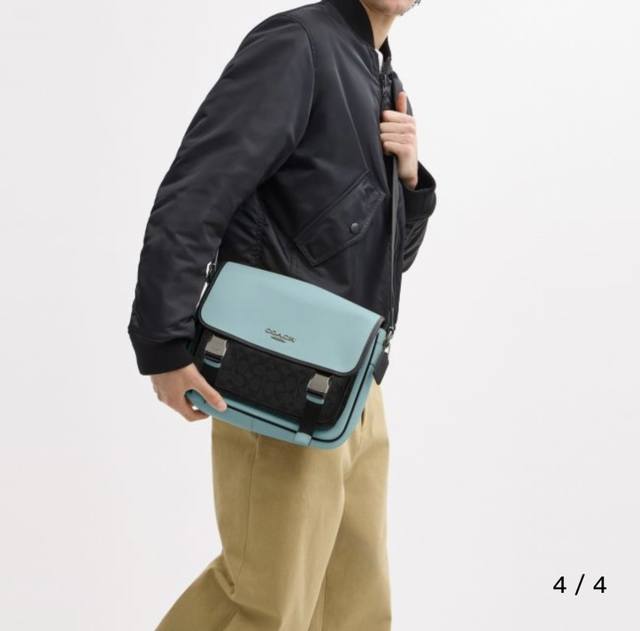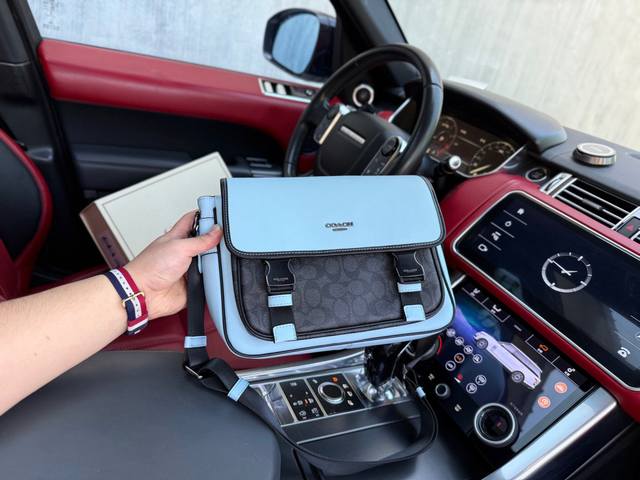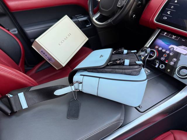 Coach Racer messenger bag in blue color blocking, the latest light blue shoulder