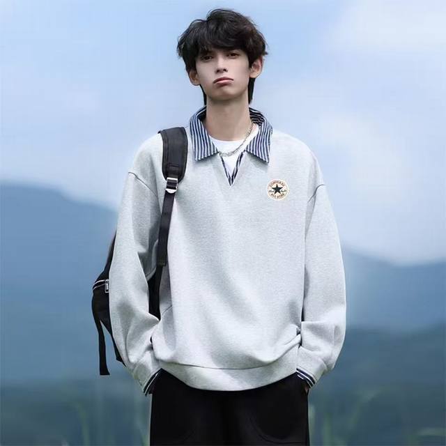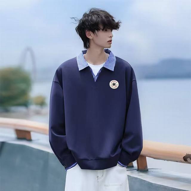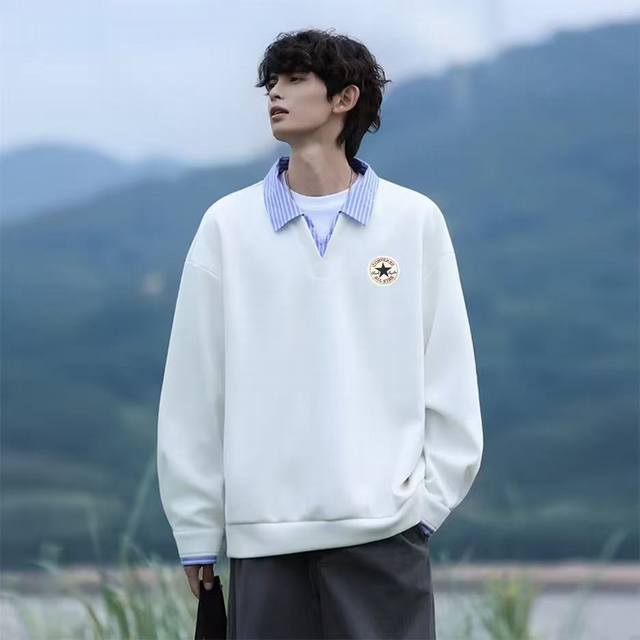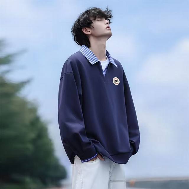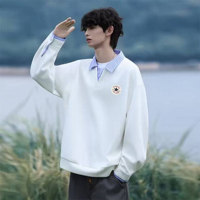 Converse new color-blocked lapel pullover sweatshirt/jacket, unisex. Features a color-blocked design, a unique V-neck lapel, and a Converse label on the chest. Simple yet stylish, youthful and trendy, this unisex sweatshirt/jacket is perfect for both men and women, and looks great as a couple's outfit. Colors: White, Gray, Navy Blue. Sizes: M-3XL (See picture 9).