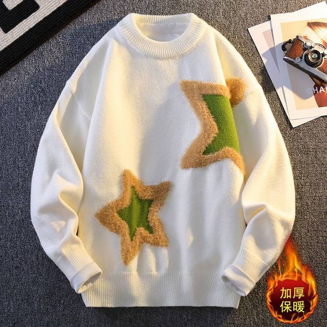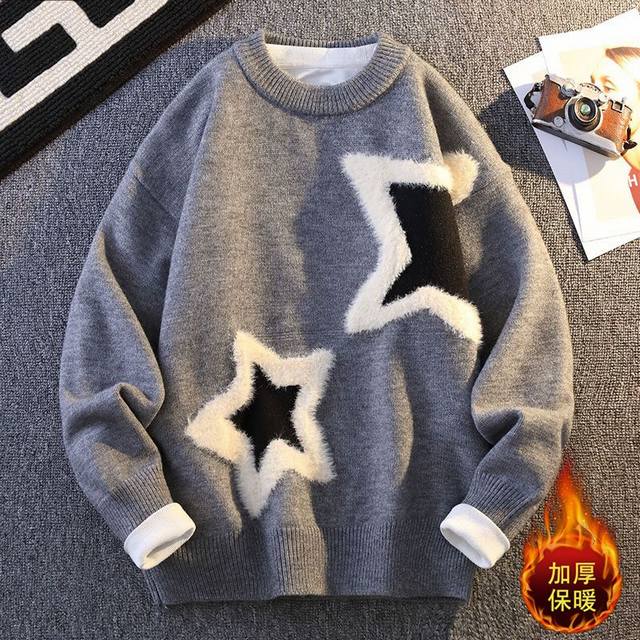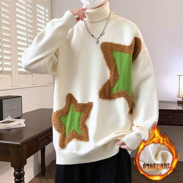 Converse Winter New Fashionable Solid Color Patchwork Large Five-Pointed Star Fleece-Lined Thick Sweater. Made of skin-friendly material, this super-popular color scheme is incredibly stylish and versatile. It's soft, comfortable, and extremely delicate against the skin. Wearing it alone, there's absolutely no prickly feeling; it's very gentle. The high-end knitting craftsmanship is clearly visible in the detailed pictures! Effortlessly showcasing a luxurious and sophisticated status. Super versatile and slimming, unisex style, super stylish. Colors: Black, White, Gray, Red. Sizes: M, 4XL.