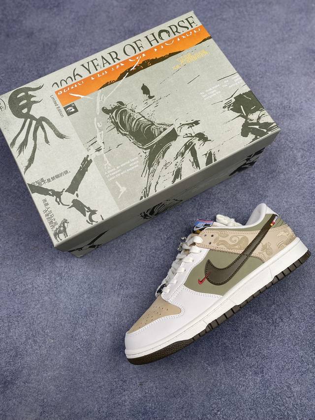 Cs Pure Original Nike SB Dunk Low "Year of the Horse Limited Edition" Anniversary High-End Custom Low-Top Casual Sneakers. Factory direct, pure original quality, extremely clean leather, clean cut without any rough edges, perfect details. Product Number: Iq1118-220. Sizes: 36 36.5 37.5 38 38.5 39 40 40.5 41 42 42.5 43 44 44.5 45 46W8.