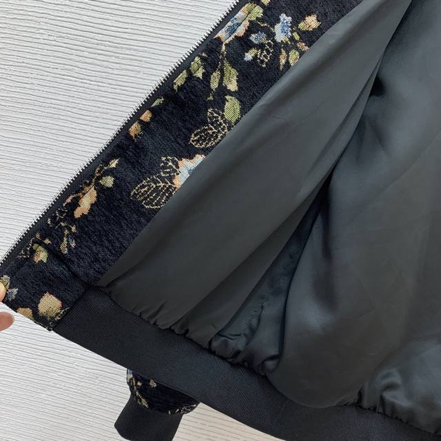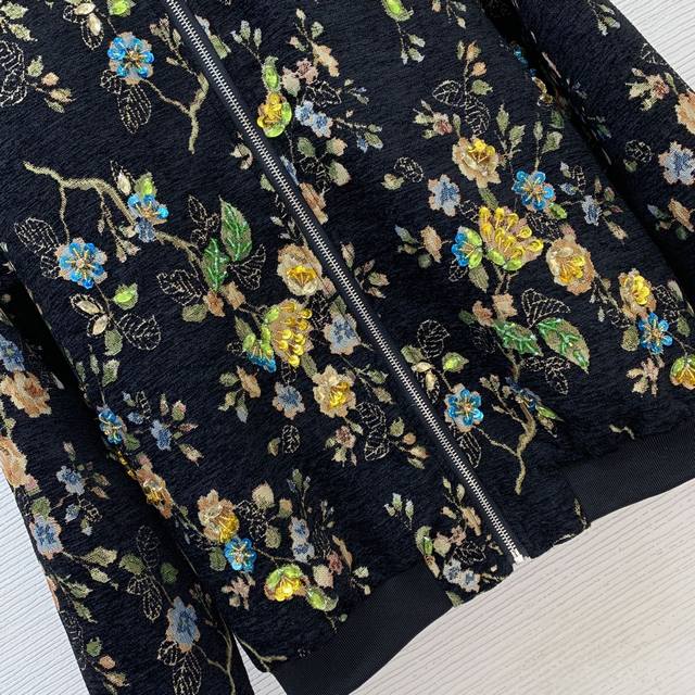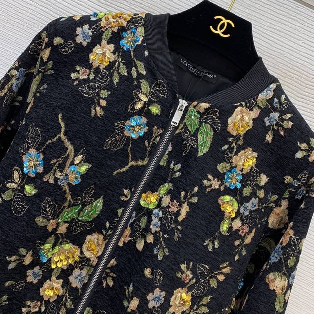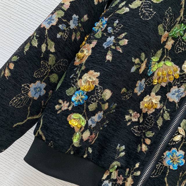 Dolce & Gabbana Dg* New Arrival! High-end custom chenille fleece fabric, luxurious heavy-duty floral and rhinestone beaded embellishments on the front, stylish stand-up collar baseball jacket! Black, Size S: Shoulder width 38cm, Chest 98cm, Sleeve length 59cm, Length 57cm.