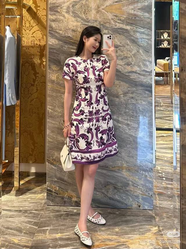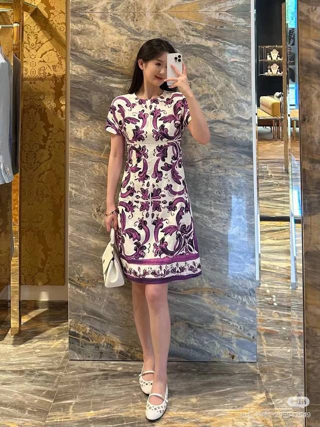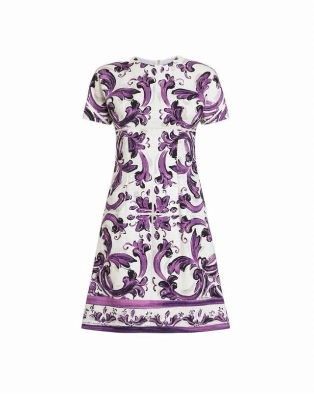 Dolce & Gabbana (Dg) New High-End Custom-Made Dress with Heavy Rhinestone Embellishing on the Front, European and American Style Retro Floral Print, Slim Fit Short Sleeve Dress! Size S: Shoulder Width 35cm, Bust 84cm, Sleeve Length 22cm, Dress Length 86cm.
