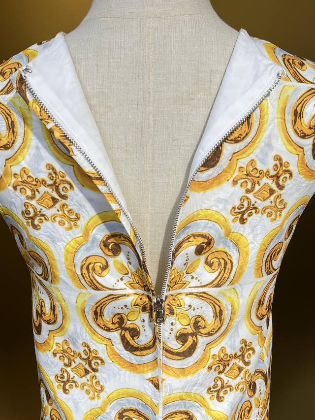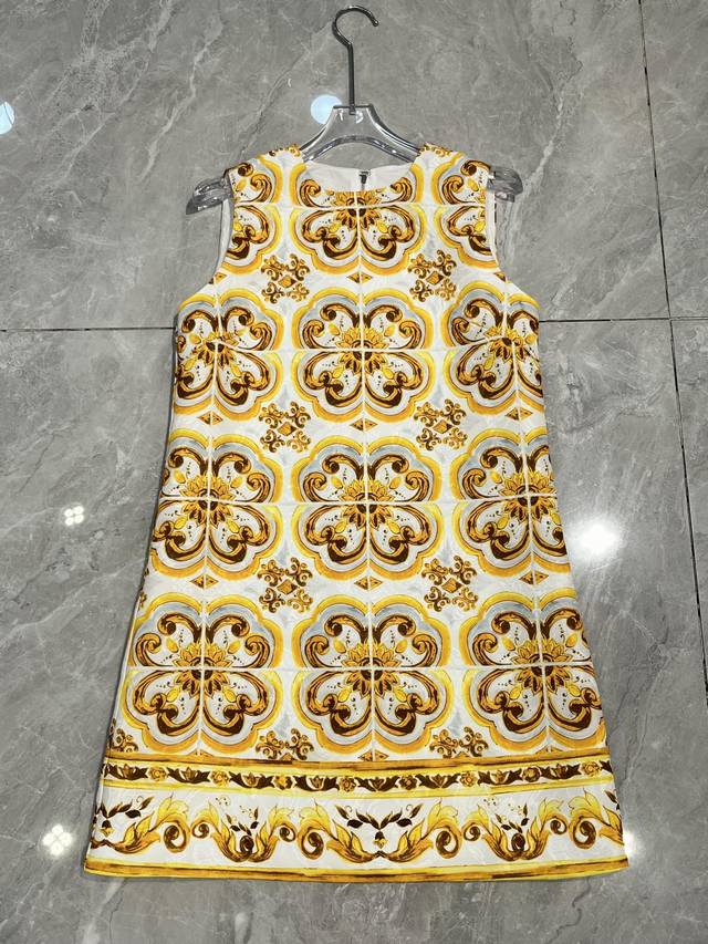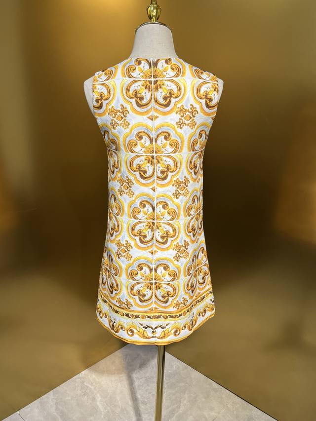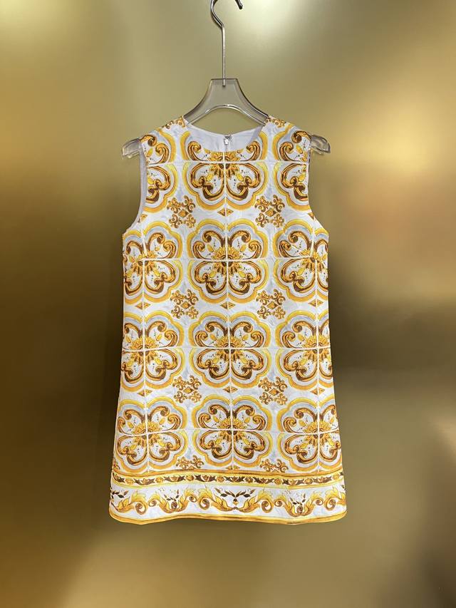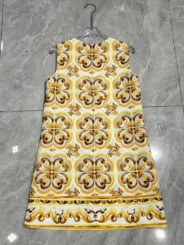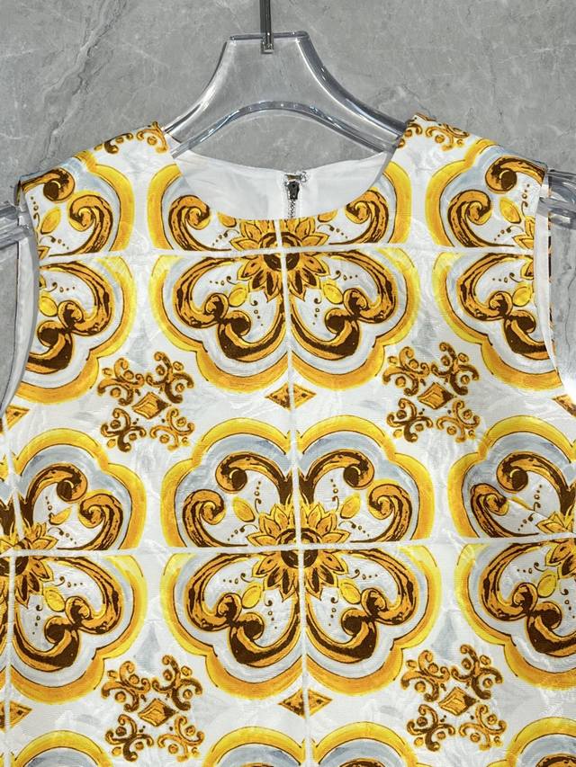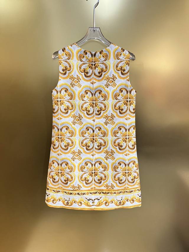 / Dolce & Gabbana original yellow porcelain jacquard casual loose vest skirt Smlxl