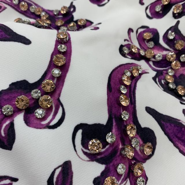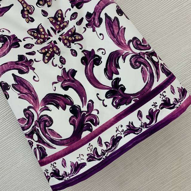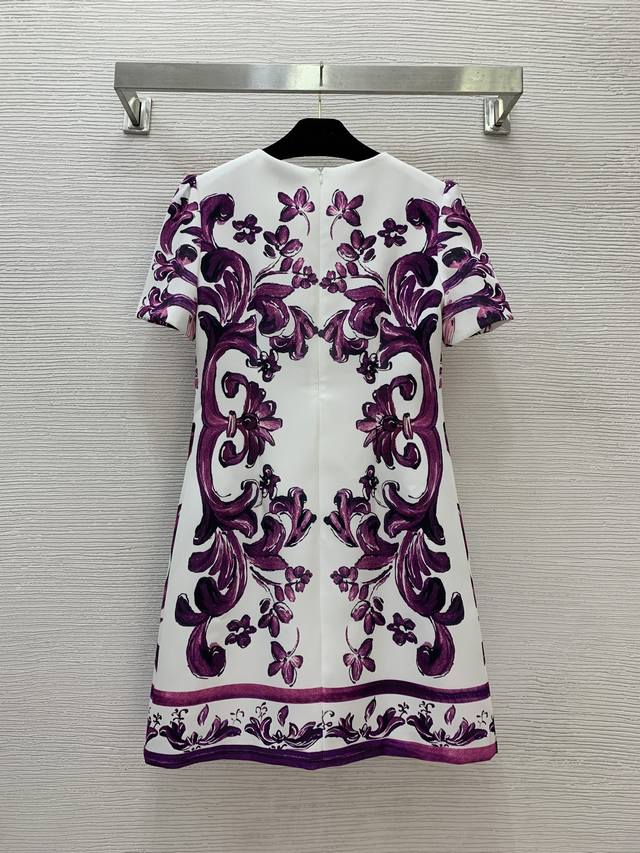 Dolce & Gabbana's new high-end custom-made front piece is heavily decorated with diamonds in a European and American retro pattern print, making it a slim-fitting short-sleeved dress! Size S: Shoulder 35, Chest 84, Sleeve Length 22, Skirt Length 86